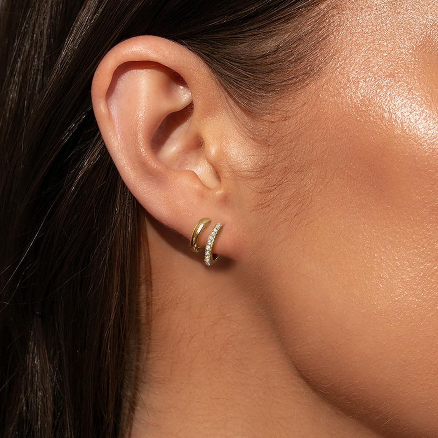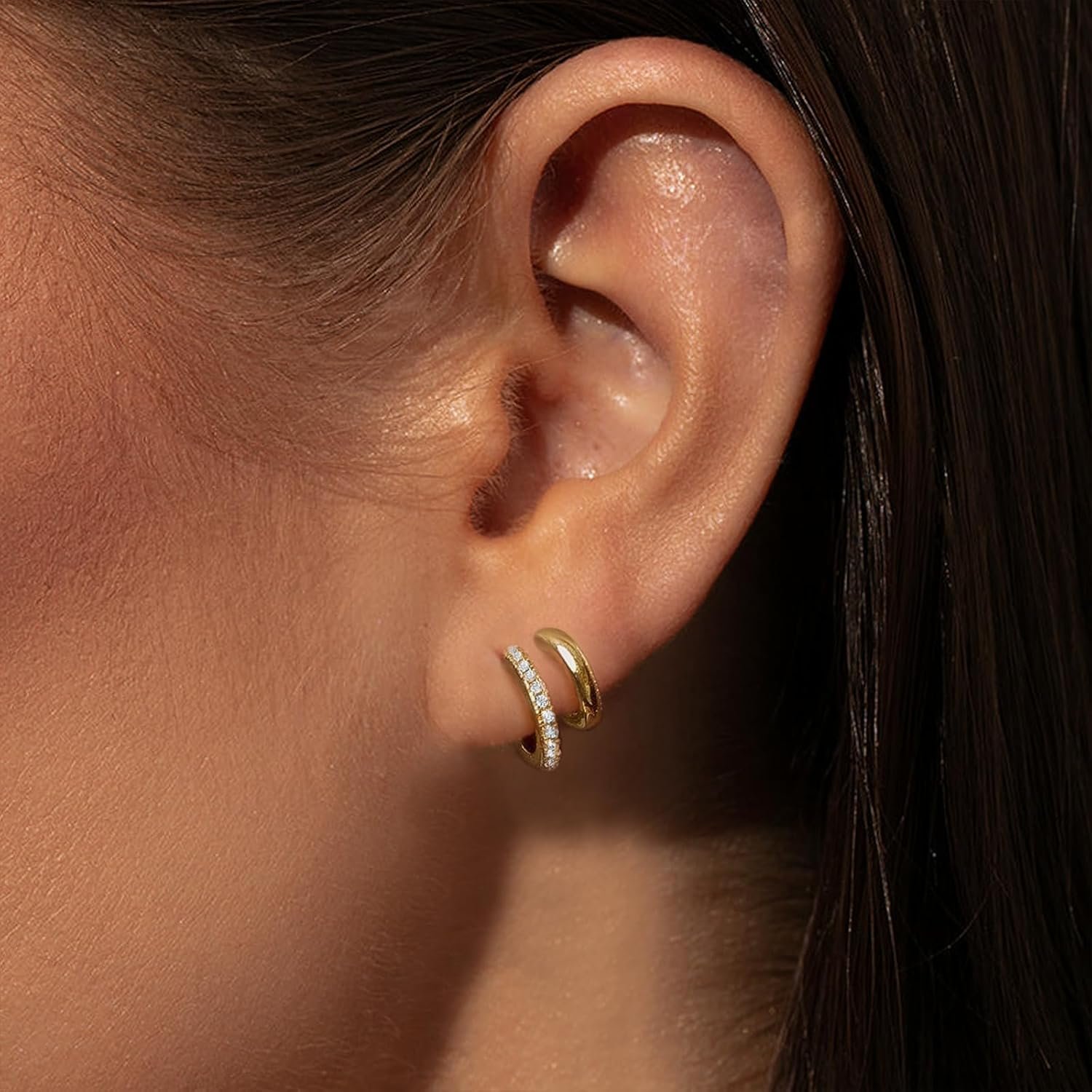 Dainty Earrings – They are sparkly, minimal, and on-trend, the perfect addition to your awesome ear stack! Wear alone, or stack wiith other gold hoops and huggies.