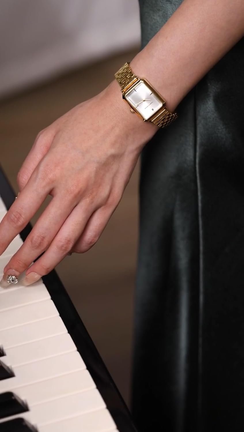 RM1982 Women’s Luxury Watch Rectangular Gold – Japanese Quartz Movement, Vintage Stainless Steel Design, Silver Dial, Elegant Dress Timepiece, 3ATM Water Resistant – Reloj para Mujer