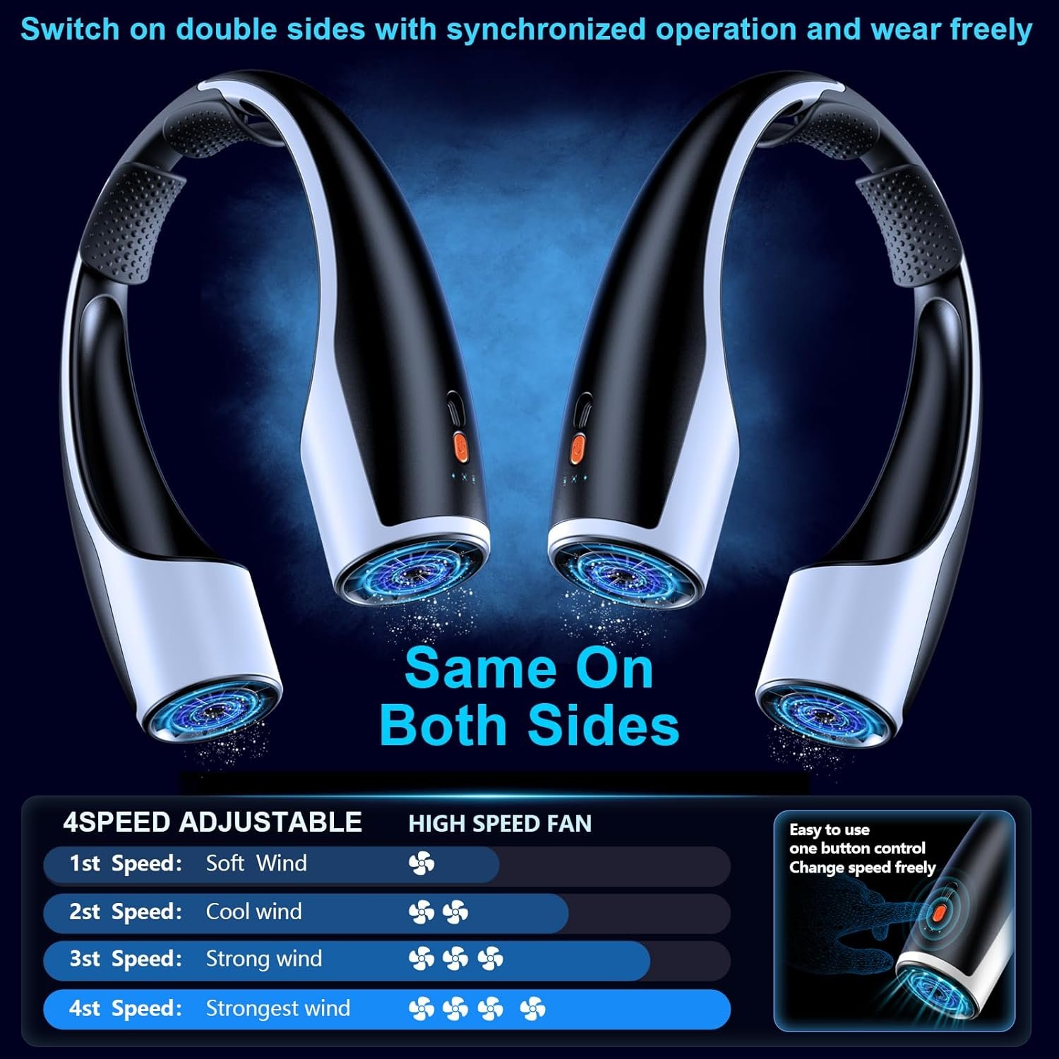 Rohent Portable Hands-Free Neck Fan – 4000mAh Battery, USB-C Rechargeable, Ultra-Quiet, 4 Adjustable Speeds – Perfect for Office, Outdoor, and Travel Use