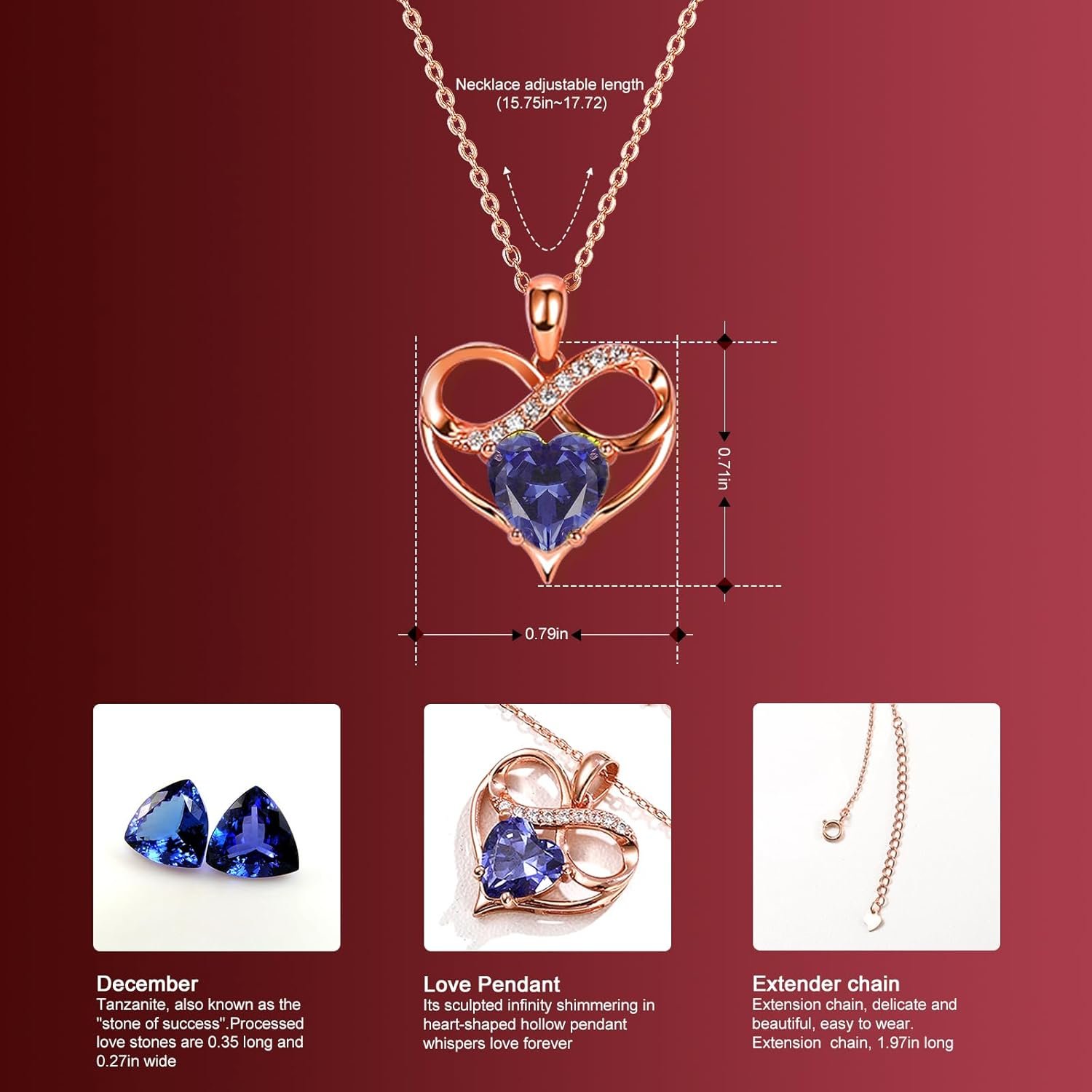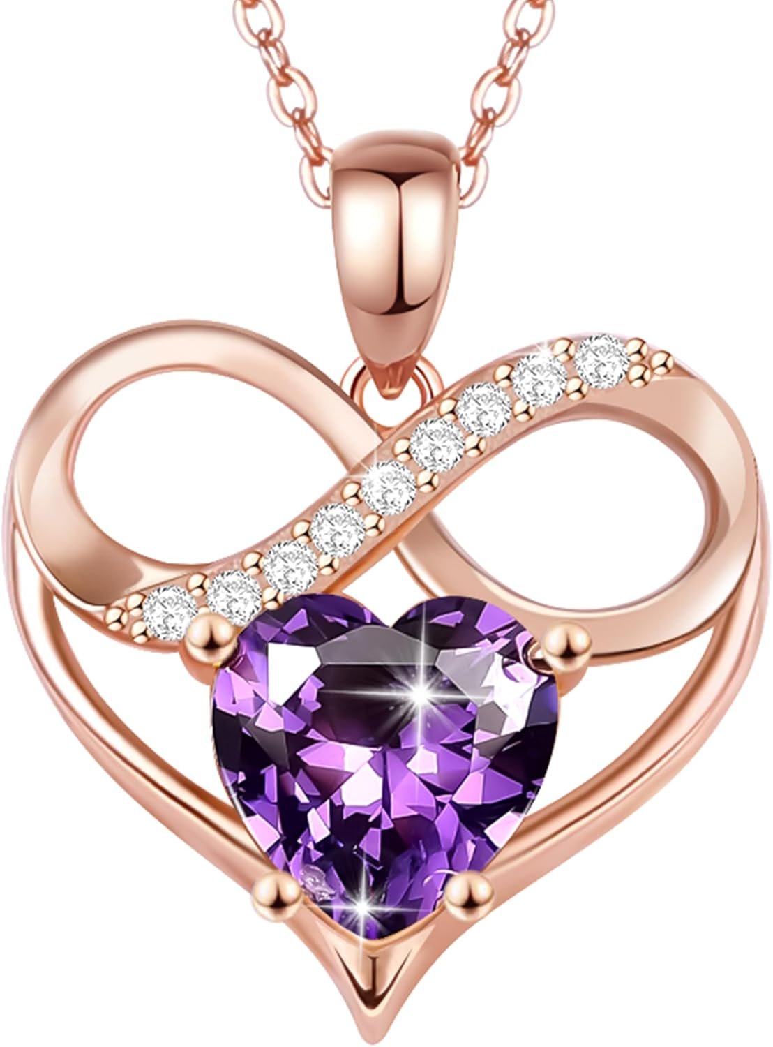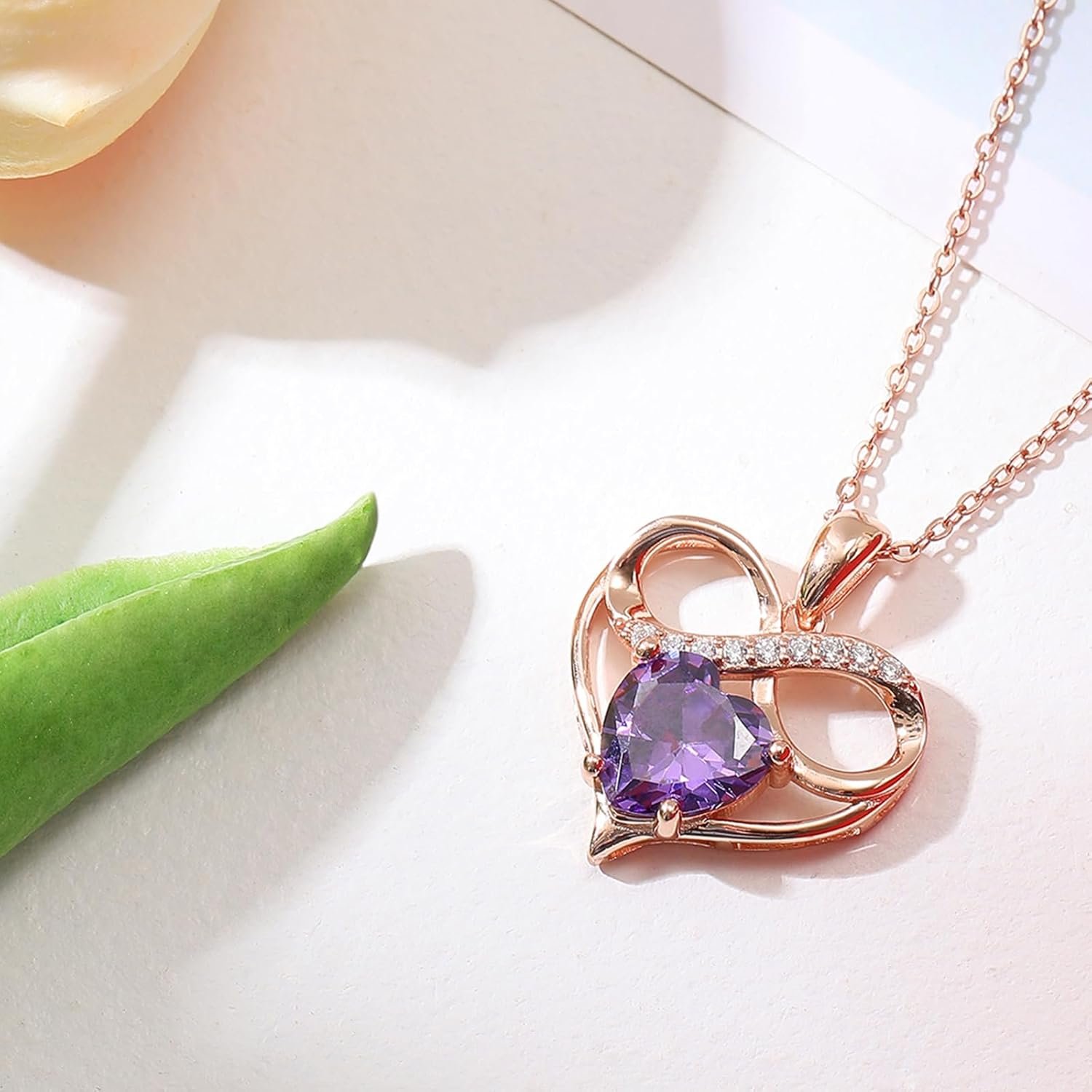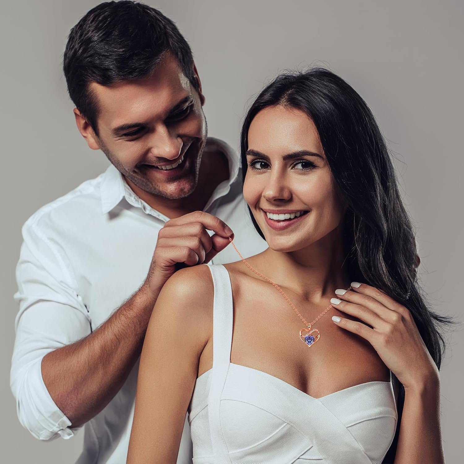 Rose Gold Birthstone Necklaces Heart Birthstone Pendant Necklaces For Women Valentine’s Day Mother’s Day Anniversary Christmas Gifts