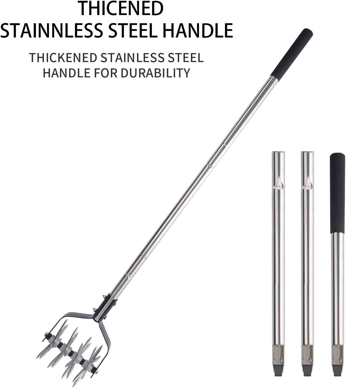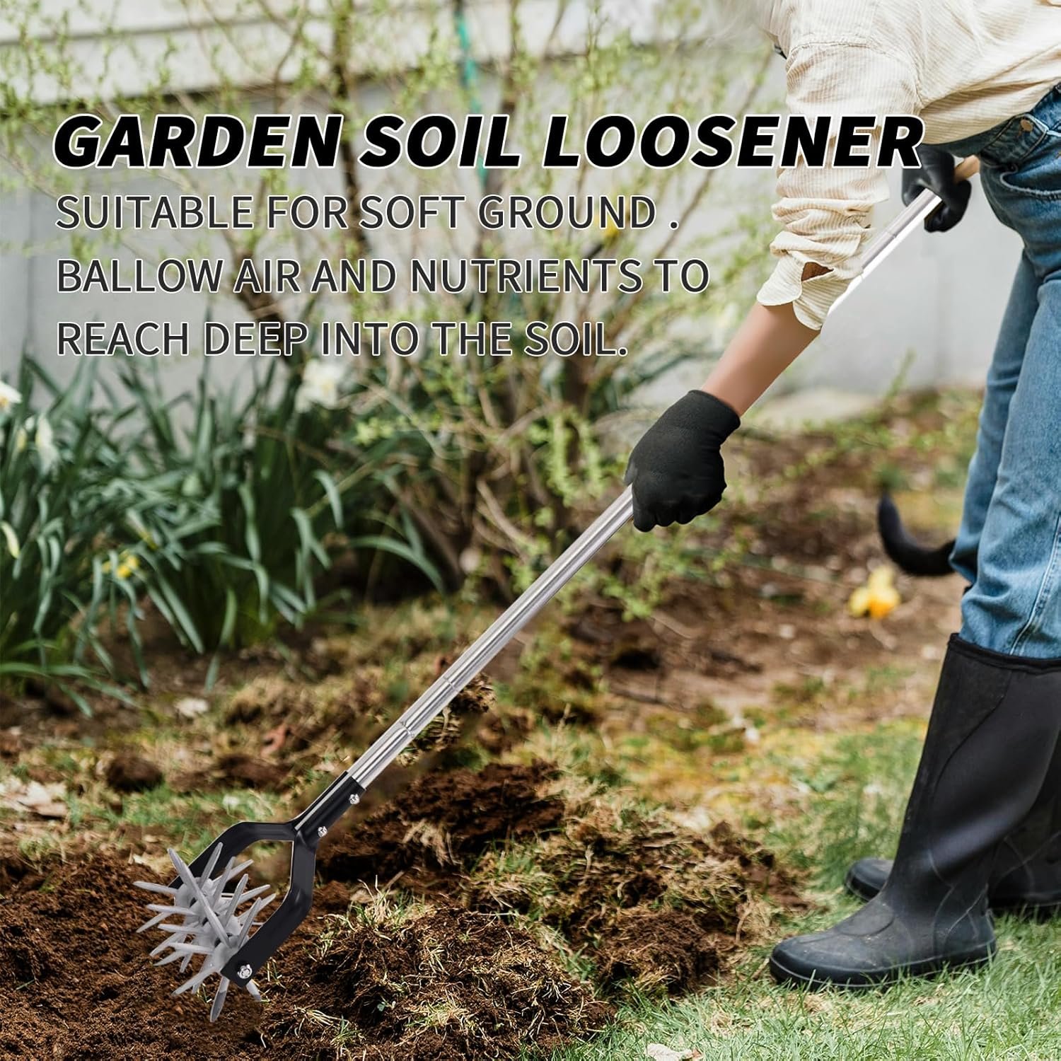 【Sturdy and Durable】: Garden cultivator is made of high-quality stainless steel and aluminum, which is sturdy, durable, wear-resistant, rust-proof, not easy to deform and break, and it can be used for a long time. With the help of 4 uniquely designed star wheels, the soil can be processed to achieve an extremely fine degree of crushing.