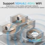 【5G Security Camera with Seamless Wireless Setup】This 100% wire-free security camera delivers ultimate flexibility with dual-band 5GHz/2.4G WiFi for 2x faster streaming. Bluetooth Smart pairing enables one-touch setup – no tech skills needed, just scan the QR code and set it up.Engineered with IP65 weatherproof housing, it operates reliably in heavy rainstorms (-22°F to 140°F). With large battery and solar panel, ideal for 24/7 monitoring of entryways, patios, or children’s rooms.