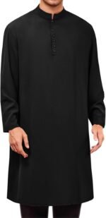Runcati Mens Abaya Thobe Arabic T Shirts Kaftan Longline Banded Collar Plain Gown Henley Shirts