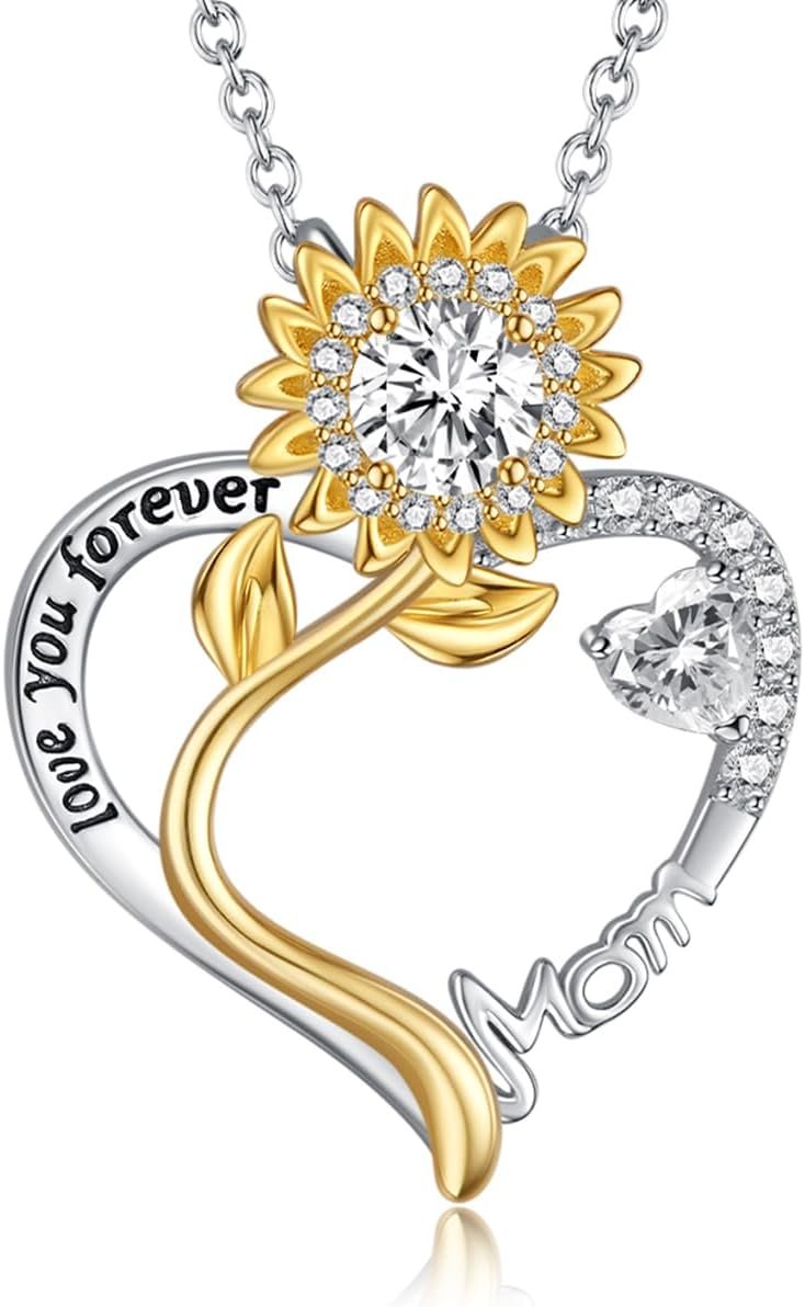 S925 Heart Necklace for Mom Wife Women S925 Sterling Silver Pendant Necklace Jewelry Gift for Mother’s Day Birthday Christmas Wedding Thanksgiving Day Gift