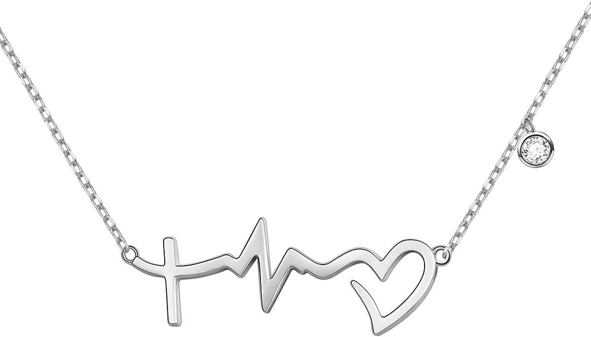 S925 Sterling Silver Faith Hope Love Cross Lifeline Heart Pendant Necklace Bracelet Christian Jewelry Gifts for Women Birthday Gift Easter Gift