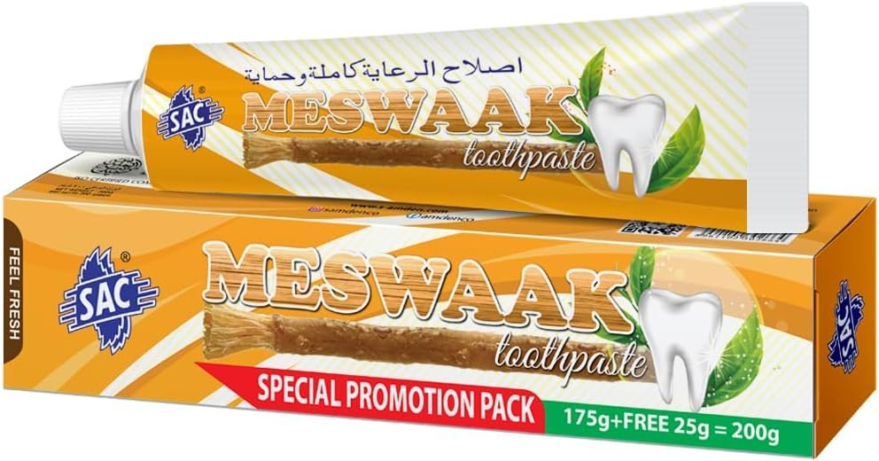 This unique toothpaste is filled with the essence of Miswak, known for its oral health benefits for centuries.It promotes gum health, freshens breath, and helps maintain strong and healthy teeth.