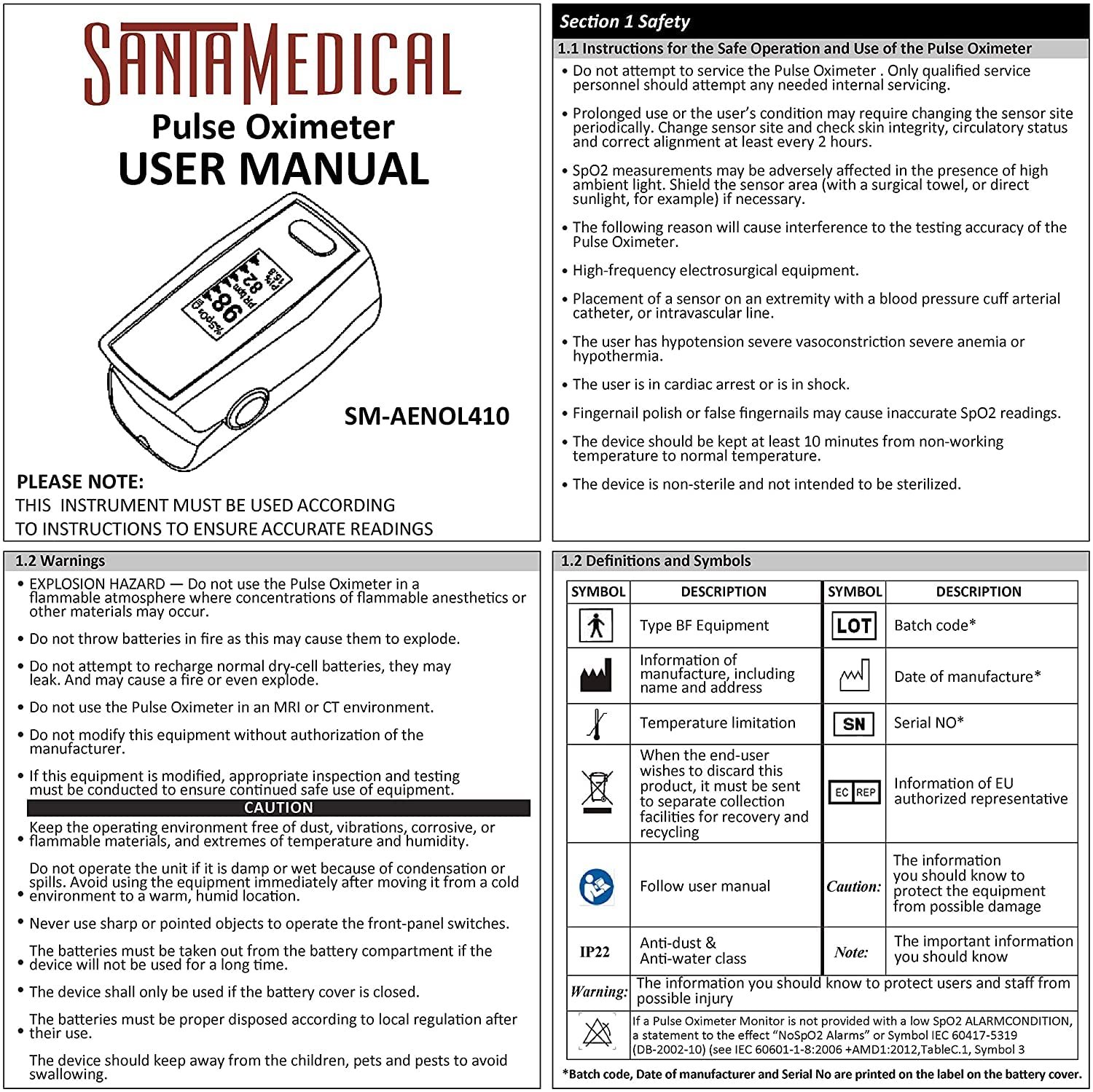 Santamedical Generation 2 Fingertip Pulse Oximeter with Batteries and Lanyard