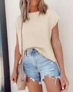 Saodimallsu 2025 Fashion Cap Sleeve Tops Summer Sweater Vests