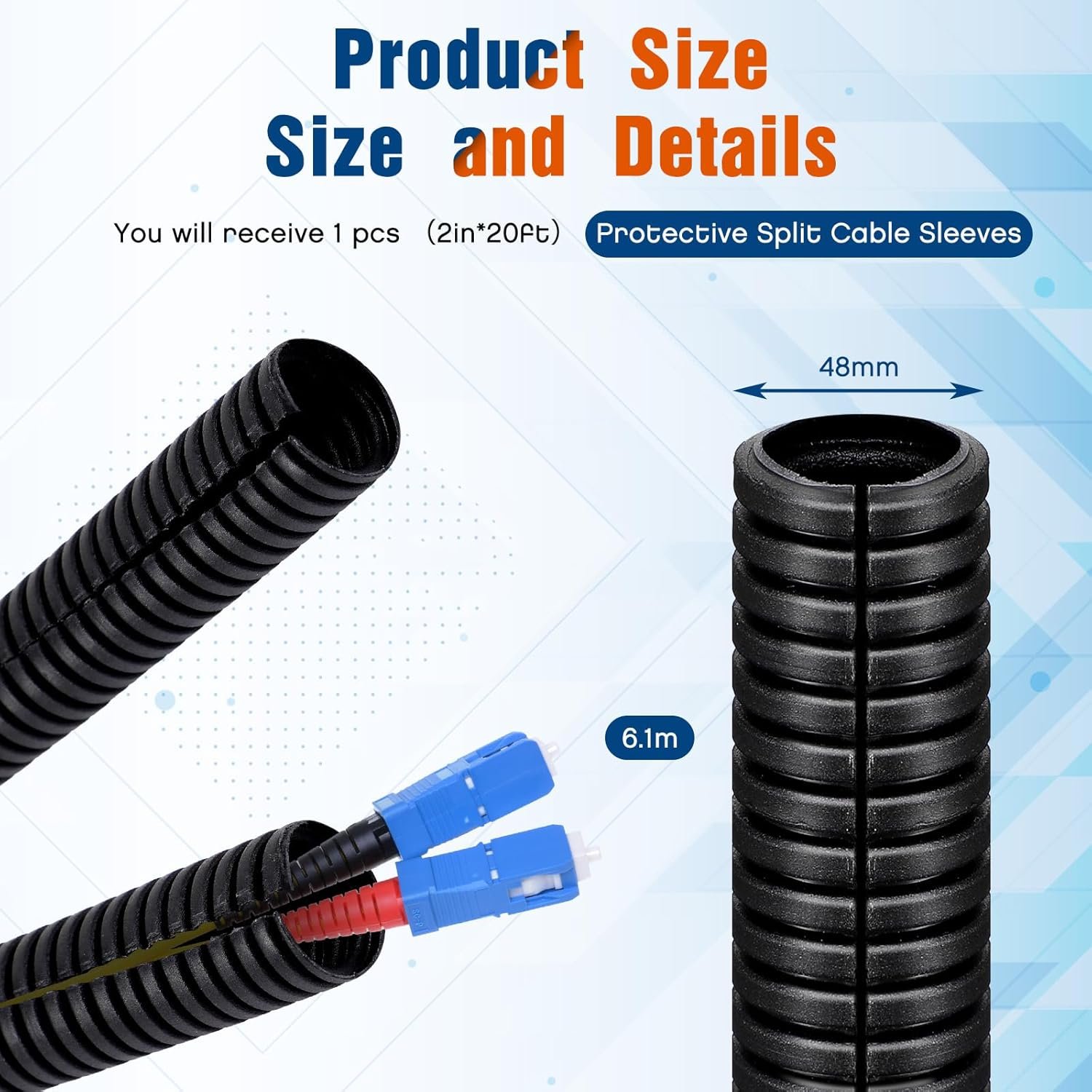 Suitable Size: our split loom tubing measures roughly 2 inches x 20 ft/ 48 mm x 6.1 m, providing you with ample coverage for your various wiring needs; Its length makes it meets different customer needs for industries, homes, and offices