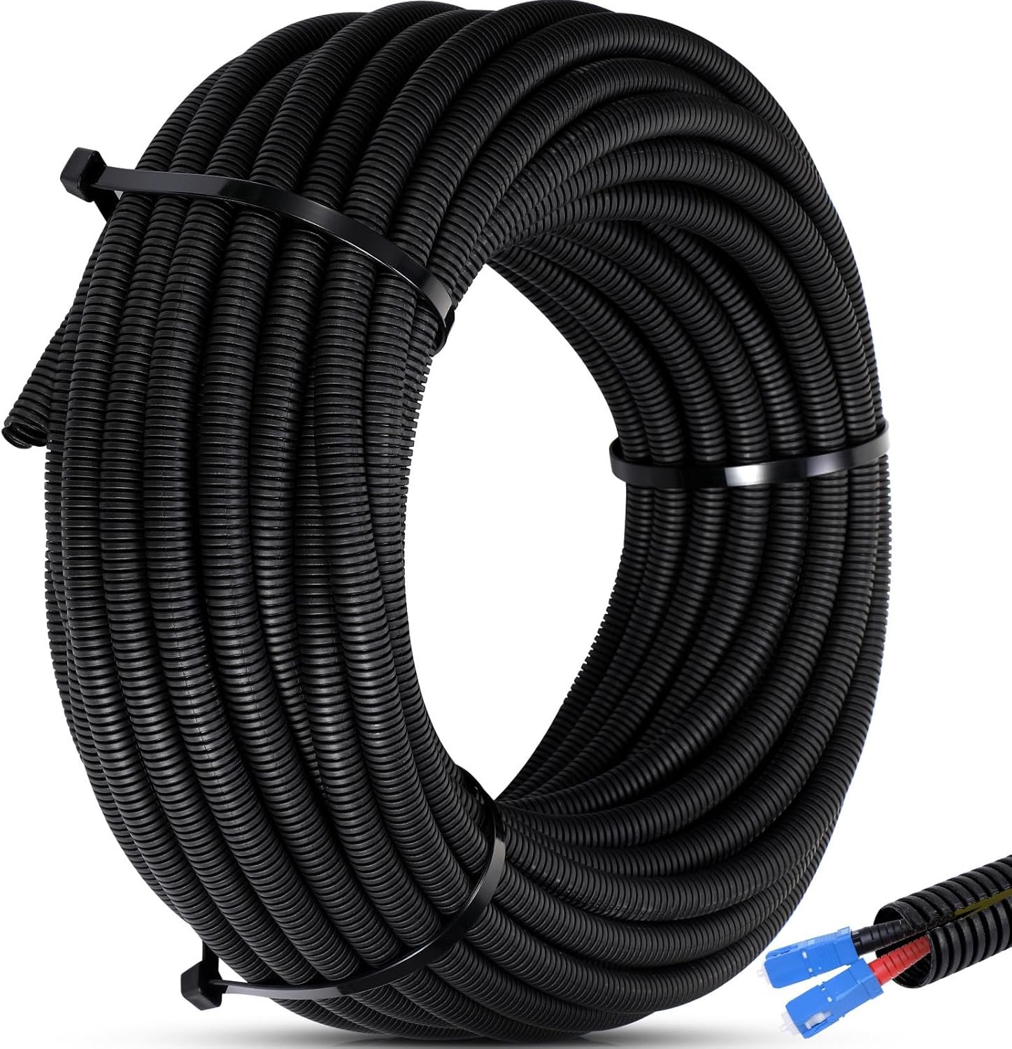 Quality Material: this resilient material is capable of withstanding temperatures of 65 °C (149 degrees Fahrenheit) continuously and 90 °C (194 degrees Fahrenheit) for a short period; The PE material applied in the making of this split loom tubing is rigid, durable, and reliable; It can withstand wear and tear, corrosion, and harsh environmental conditions, making it suitable for both indoor and outdoor use