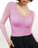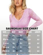 Be the first to review “SAUNGKUAI Women’s Lace Bodysuit Plunge Deep V-Neck Long Sleeve Thong Body Suits Tops Double Lined Y2K Outfits for Going Out” Cancel reply
