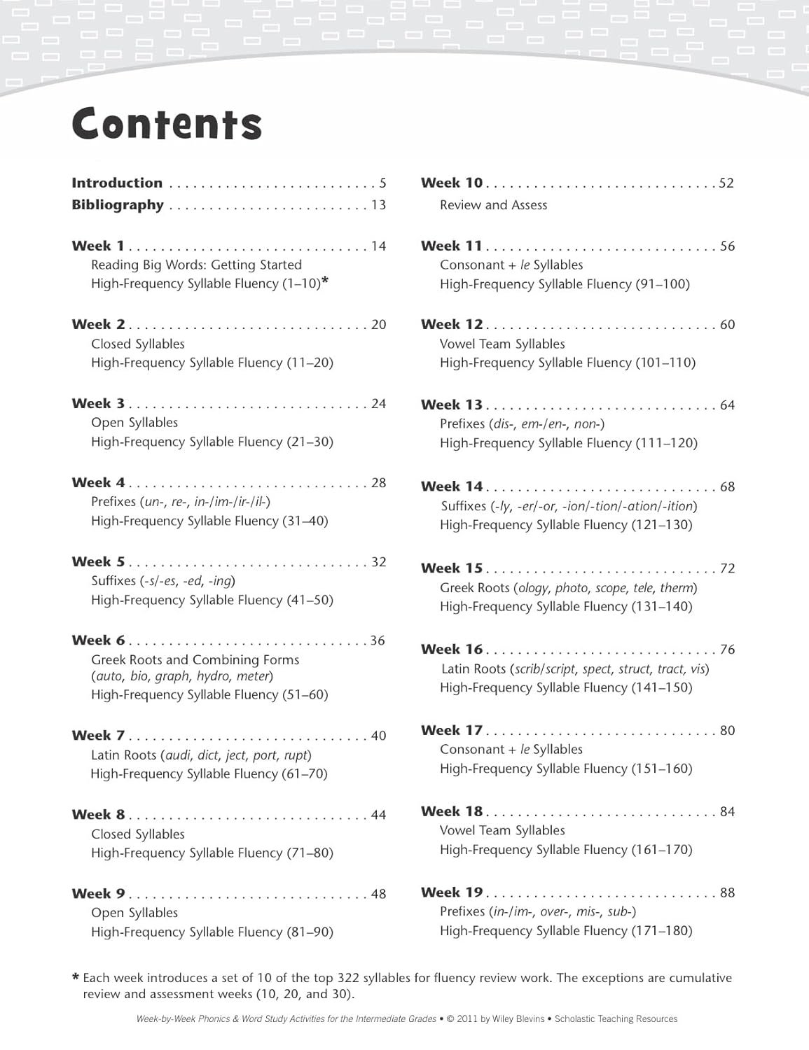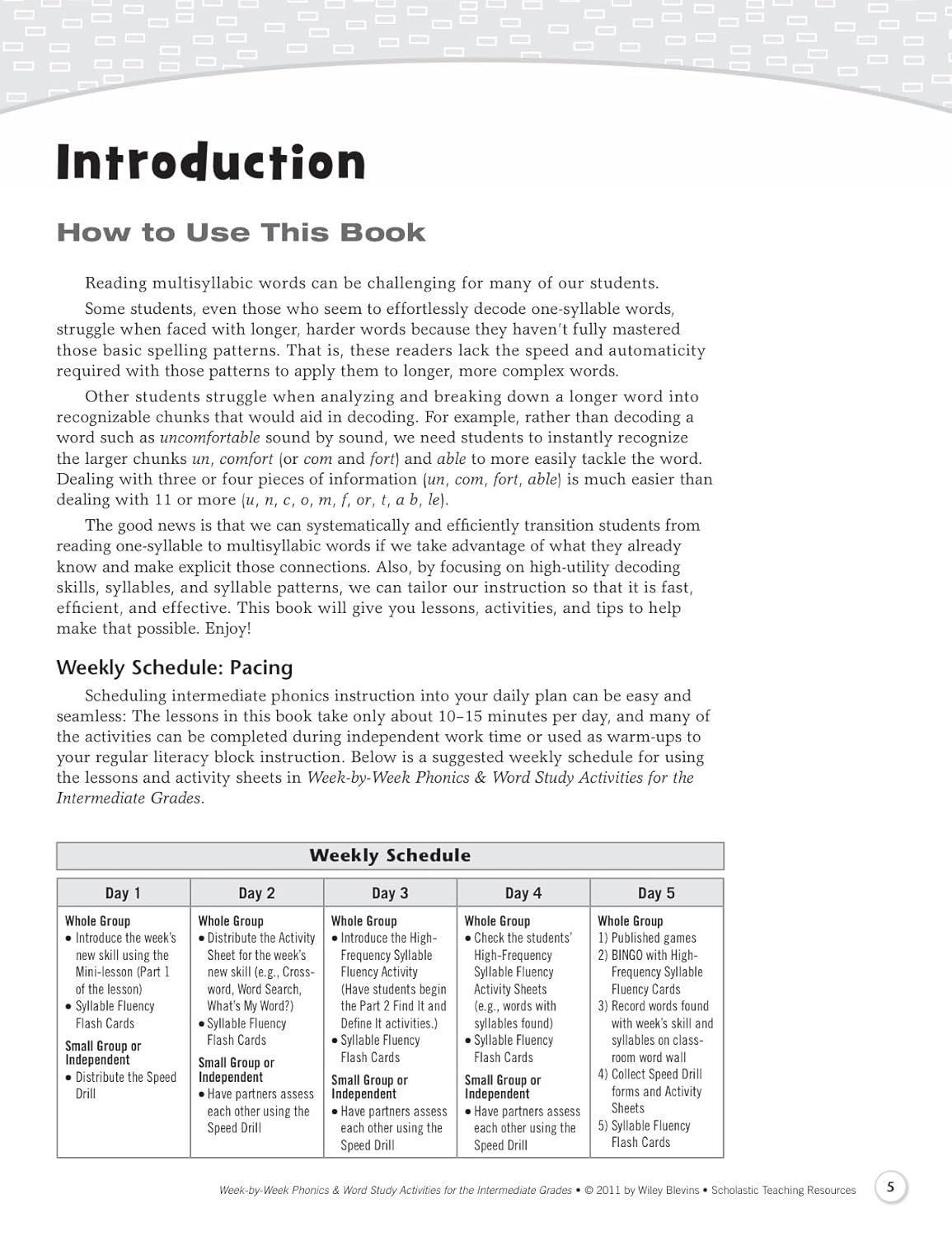Scholastic Week By Week Phonics and Word Study for the Intermediate Grades, Grades 3-6