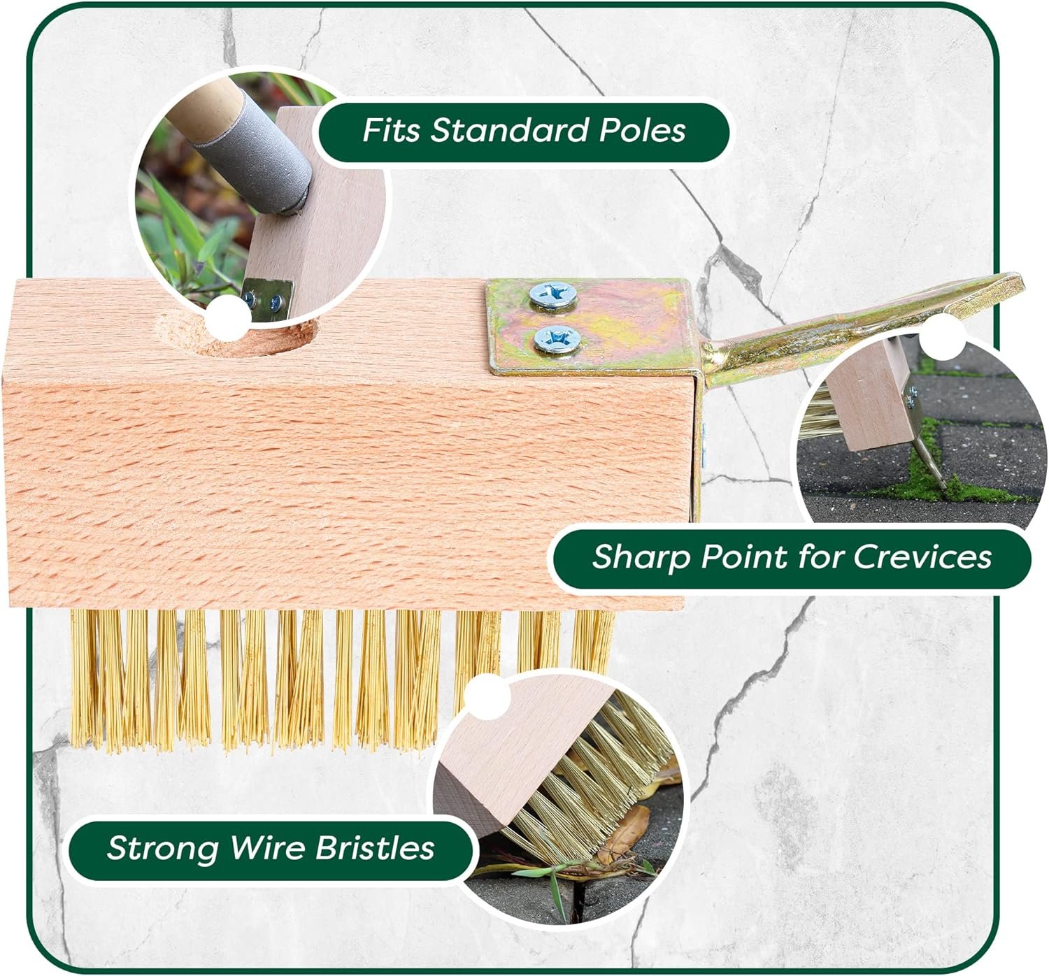 SCRUBIT Moss & Weed Remover Wired Grout Cleaner Brush, Great for Cleaning Decks, Pavers, Patios & Walkways Weed Scraper & Wire Brush Set, Combo w/2 Brush Heads & Scraping Hook – Grout Remover Tool