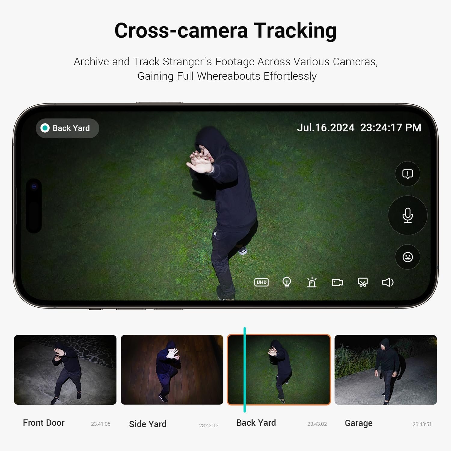 360° Coverage, Motion Tracking, Cross-Camera Tracking: The solar camera outdoor wireless provides more comprehensive security. 360° panoramic cameras easily monitor porches, yards, and driveways without blind spots; support auto motion tracking and activity recording of detected people, and also allow tracking and archiving of strangers’ footage from several 360 camera, easy to get their complete whereabouts