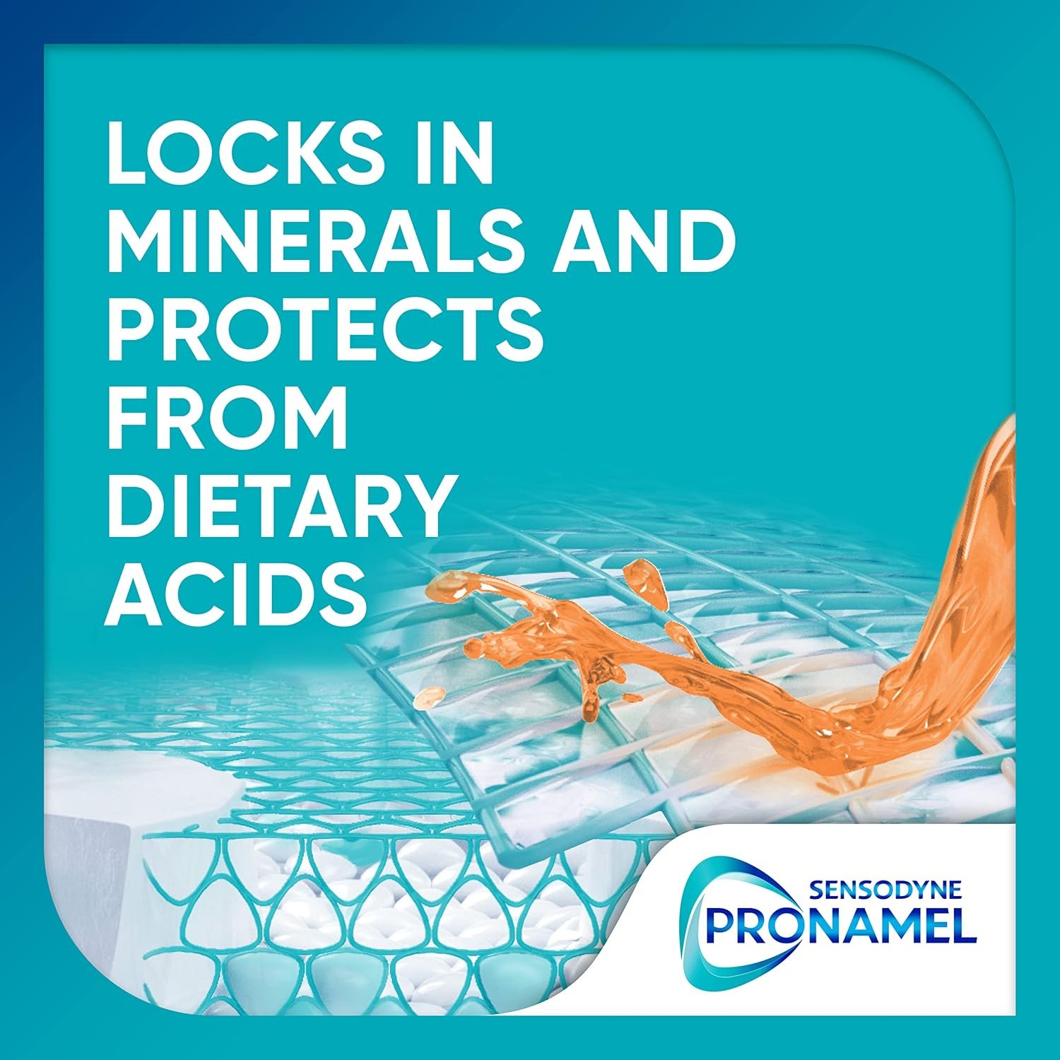 Sensodyne Pronamel Intensive Enamel Repair Toothpaste for Sensitive Teeth actively rehardens and strengthens enamel, protecting teeth from acid erosion. This enamel repairing toothpaste is Pronamel’s most advanced enamel care formulation, helping minerals penetrate deep into the enamel surface to repair microdamage and strengthen enamel for strong, healthy teeth. Made with potassium nitrate and sodium fluoride, this sensitivity toothpaste protects you against cavities and acid erosion caused by exposure to everyday acidic foods or stomach acid. Twice daily brushing with this toothpaste for enamel repair builds a barrier over your teeth that shields you from pain triggers, providing lasting sensitivity relief, with a refreshing taste for fresh breath. Build a stronger foundation with Pronamel, so your teeth can look and feel their best.