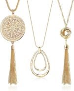 SEVENSTONE 3PCS Long Pendant Necklaces for Women Knot Disk Circle Tassel Statement Sweater Necklace Set