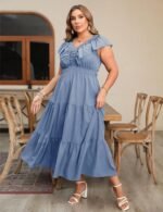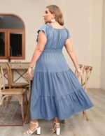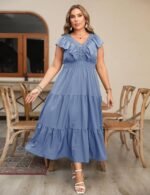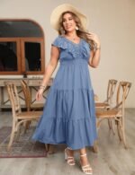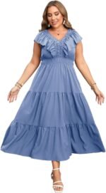 Plus Size Maxi Dress for Curvy Women V Neck Ruffle Sleeveless Boho Dress Casual Modest Floral Summer Dresses