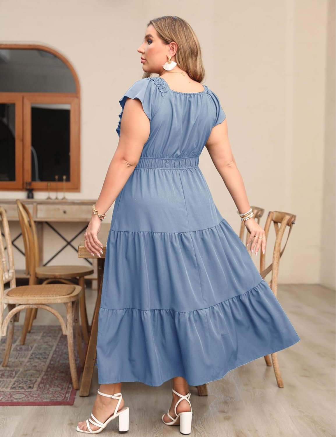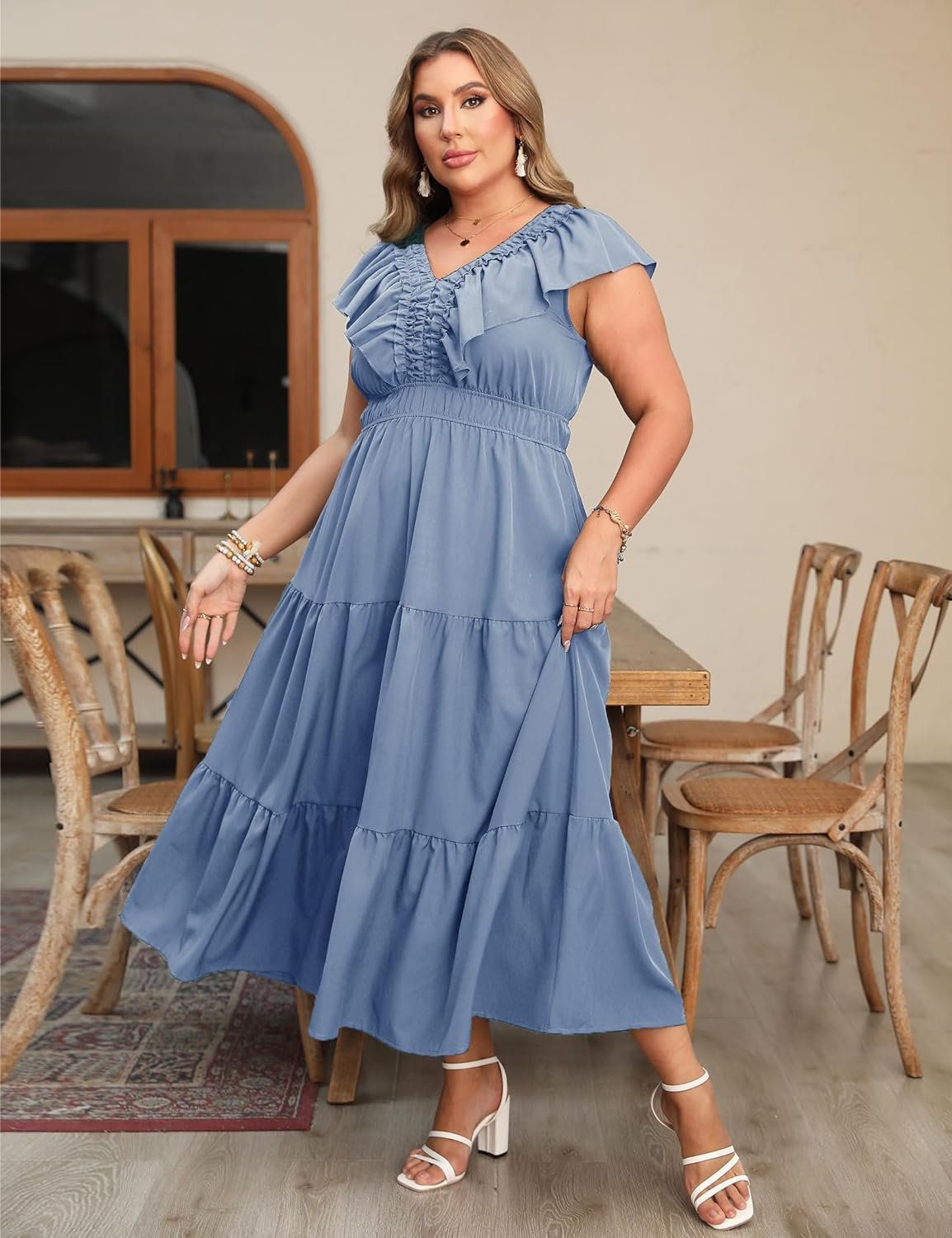 ShopWonder Plus Size Sleeveless Maxi Dress for Women V Neck Ruffle Elegant Casual Dress Modest Floral Summer Dresses