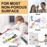 Writing smoothly and drying quickly with washable ink can easily wiped off from whiteboards, glass, mirror, and most non-porous surfaces with any cloth or eraser and are not suitable for use on dark surfaces such as chalkboards and blackboards. The kit is suitable for both adults and kids. It can be used in many places such as home, classrooms, offices and so on.