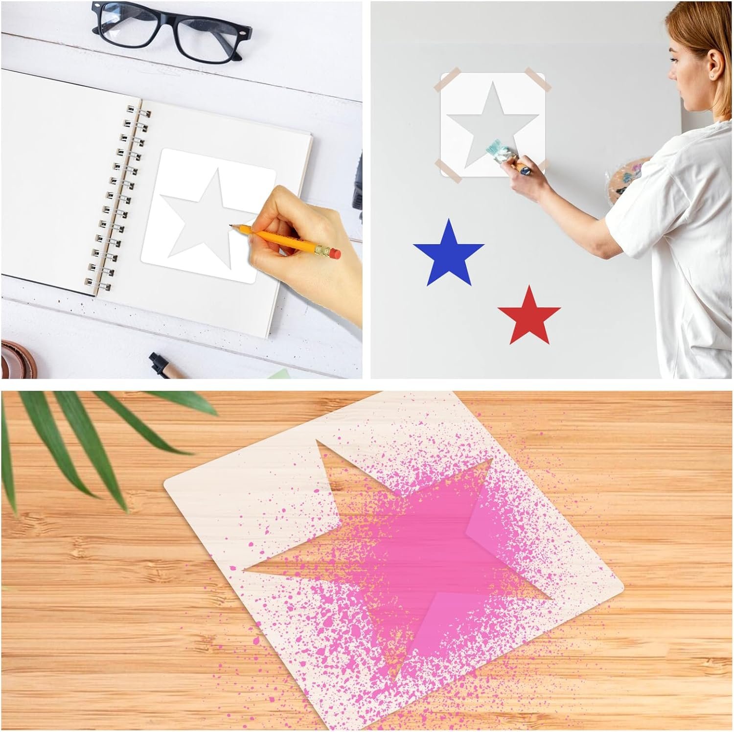 【Wide Applications】Multiple star pattern templates can also use as a gift for friend or family. Painting stencils for painting can help improve hands-on ability, imagination and creativity. Stencils for crafts are perfect for artistic creation and can also be given as gifts to friends or family
