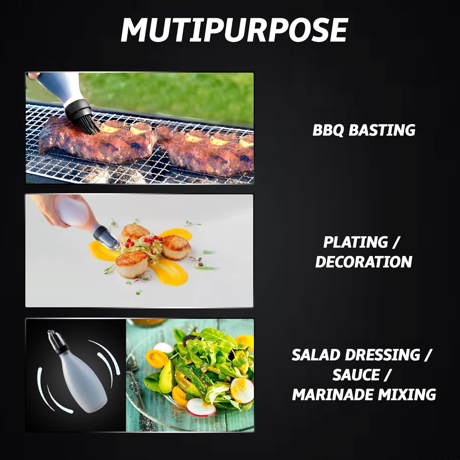 BUILT-IN BRUSH MAKES BASTING EASY – Gently squeeze bottle to dispense sauce through the BBQ sauce brush. Tilt to allow marinade to coat food. Our BBQ basting brush for grill is soft and flexible, making it durable & smooth to brush. 100% secured lid, no leaking.