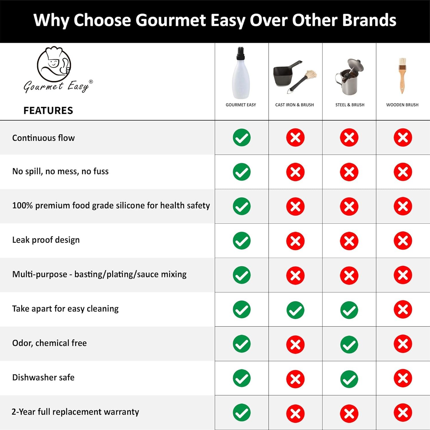 INNOVATIVE ALL IN ONE DESIGN – Handy basting bottle with sauce brush for cooking combo allows continuous flow without the mess and waste. Great BBQ accessories with huge capacity bottle (16 fl oz) so you don’t need to refill as often. Oh Baste Easy!