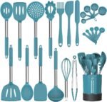 Silicone Cooking Utensil Set, Fungun Non-stick Kitchen 24 Pcs Cookware, Heat Resistant , Silicone Kitchen Tools Gift with Stainless Steel Handle (Blue-24pcs)