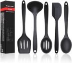 Silicone Kitchen Utensils Set, 5 PCS Heat Resistant Non Stick Cooking Tools, Silicone Spatula/Turner/Serving Spoon/Soup Ladle/Slotted Spoon, for Home and Camping