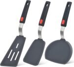 3 Pack Spatulas for Nonstick Cookware: Our silicone spatula set is made of food-grade silicone, and the soft silicone spatula head will not scratch non-stick pots. Perfect for flipping eggs, pancakes, fishs, and burgers