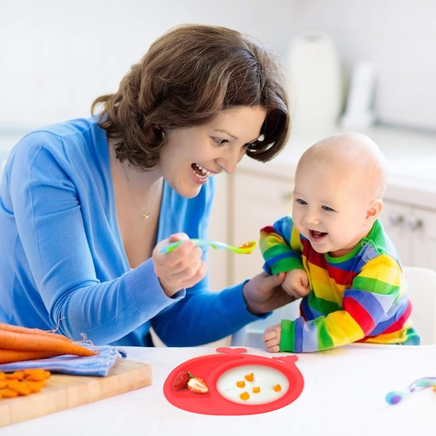 Silicone Suction Plate for Compartment Dining Dish Tableware for Self Feeding and Weaning