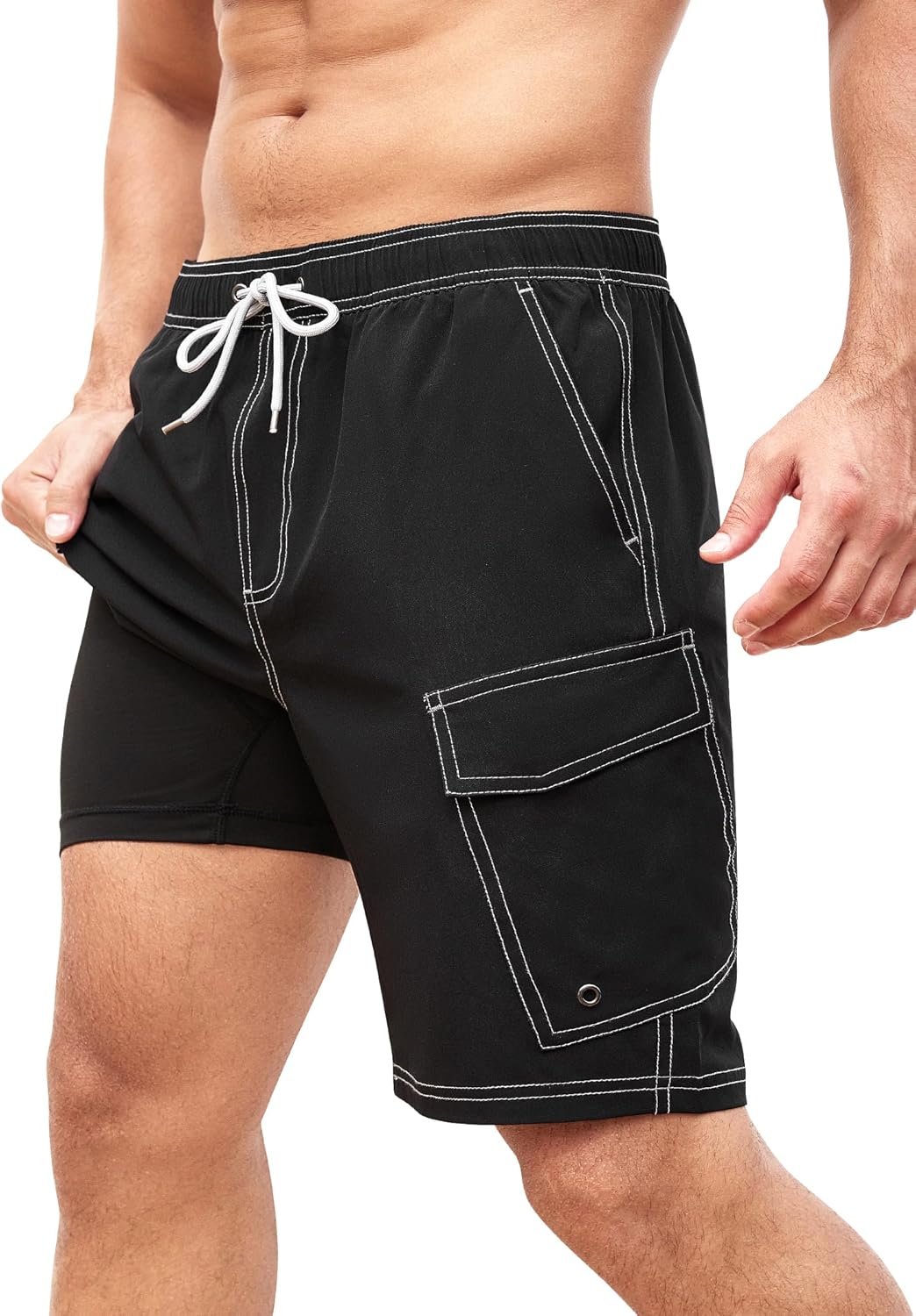 SILKWORLD Mens Swim Trunks with Compression Liner and Cargo Pockets