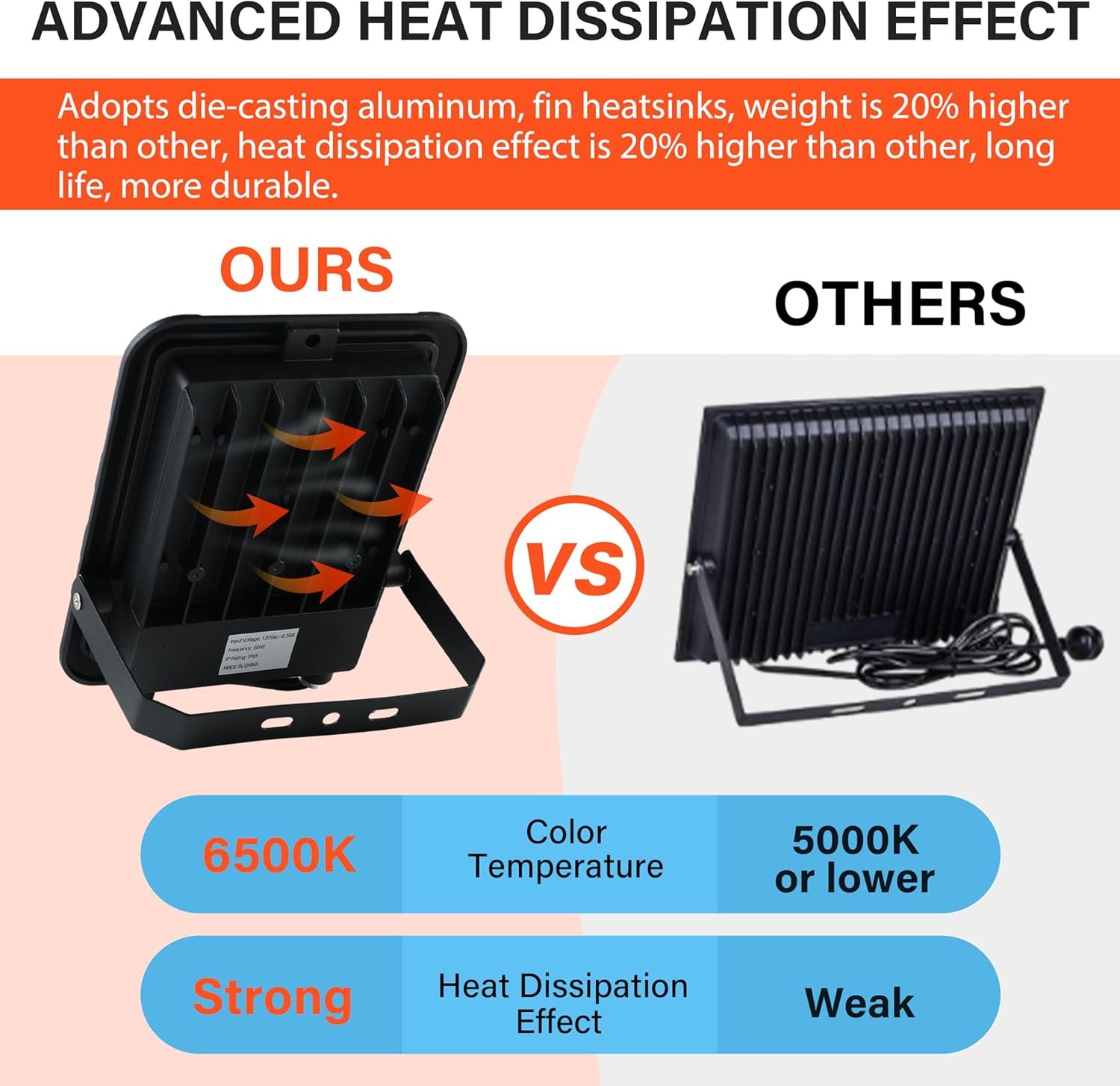 Efficent Cooling: The LED outdoor flood light adopts thickened die-casting Aluminum and fin-type heat sink, its heat dissipation effect is 20% higher than other, efficiently extend the lifetime to 30000 hours.