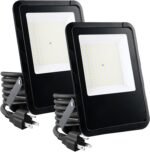 Simple Deluxe 2 Pack LED Flood Lights Outdoor, 100W 10000LM Super Bright Outside Work Light with Plug, IP65 Waterproof, 6500K Floodlight for Garage, Yard, Lawn