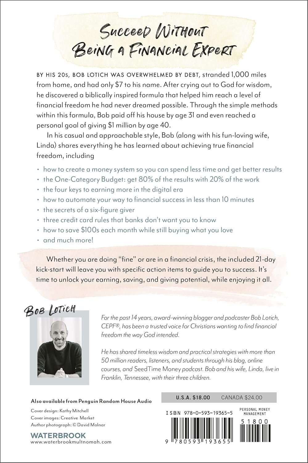 Whether you are doing “fine” or are in a financial crisis, the included 21-day kick-start will leave you with specific action items to guide you to success. You can have financial security, peace, significance, and eternal impact. Let Bob show you how to reimagine money as it was meant to be: simple.