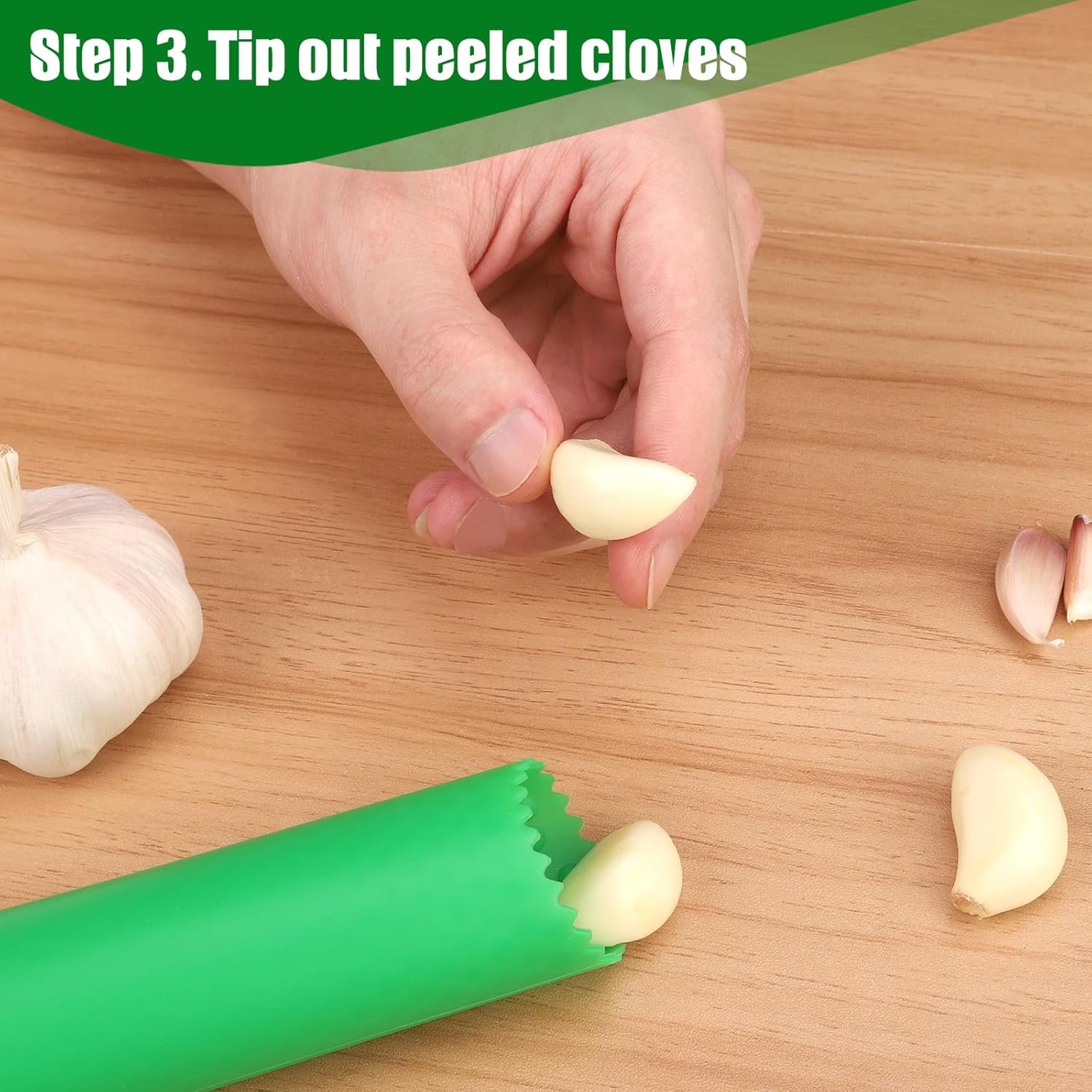 【Easy to use】Simply place several pieces of garlic cloves in tube and roll back and forth, peel cloves in seconds.