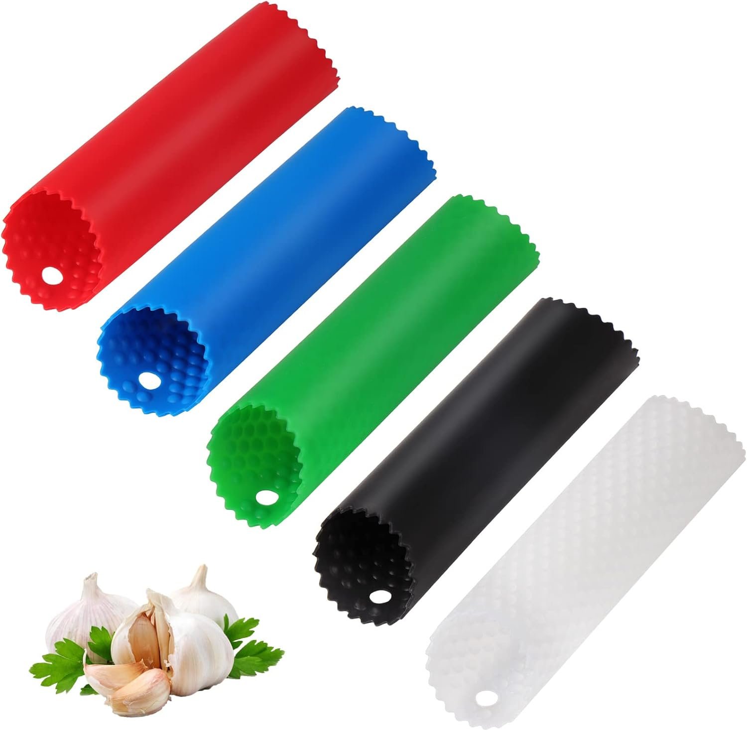 【Easy to Clean & Storage】The garlic skin is easy to remove from the silicon, just rinse your silicone garlic peeler under water or put it in the dishwasher.The perforated end is easy to hang for storage.Your purchase is risk-free. If you are unsatisfied in any way with our silicone garlic tube roller, please feels free to contact us 24-hours customer support.