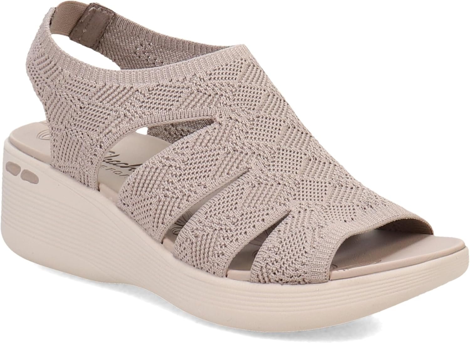 Step into the season with easygoing comfort in Skechers Pier-Lite – Memory Maker. This wedge sandal features a crochet cut out knit upper with a sling back and a Luxe Foam® footbed.