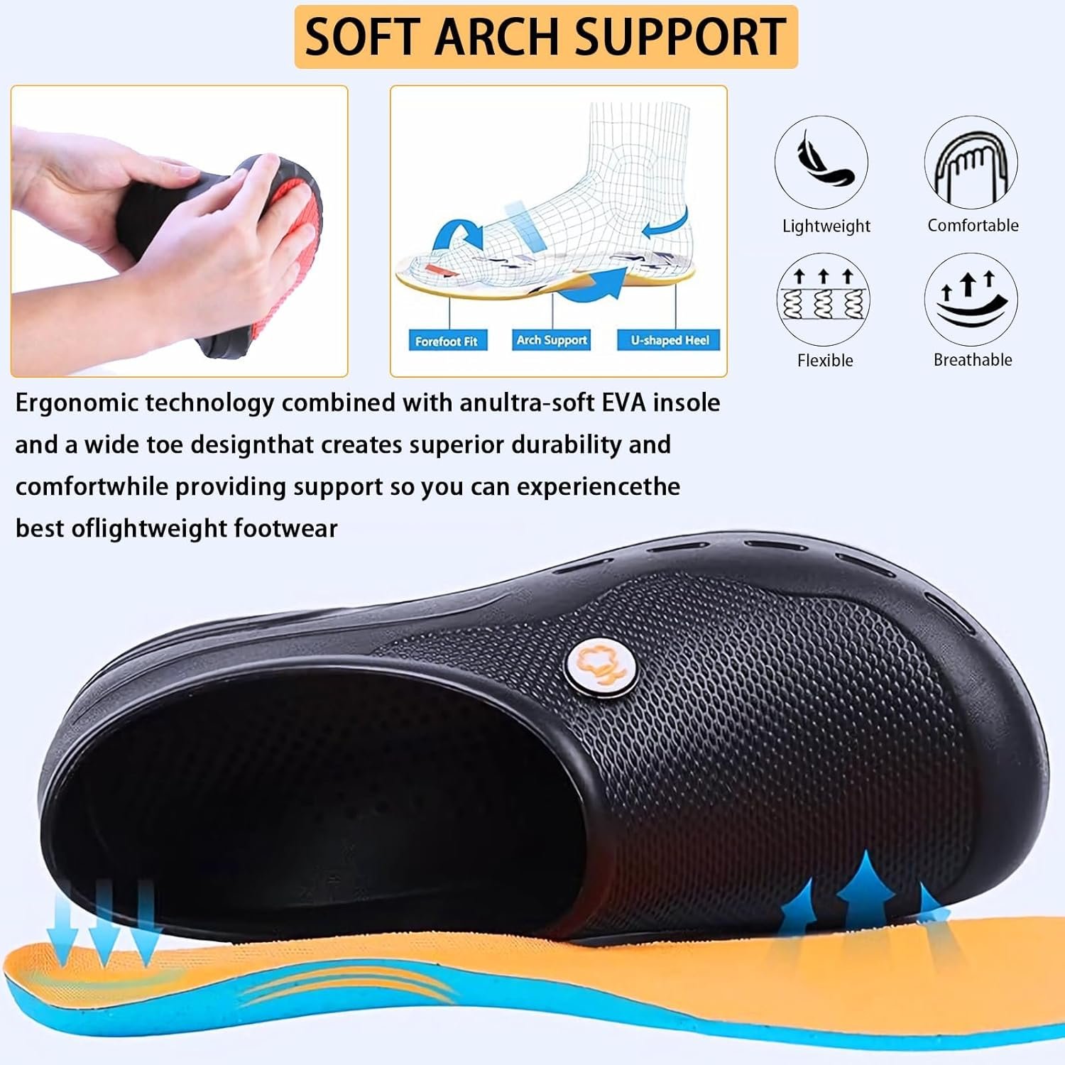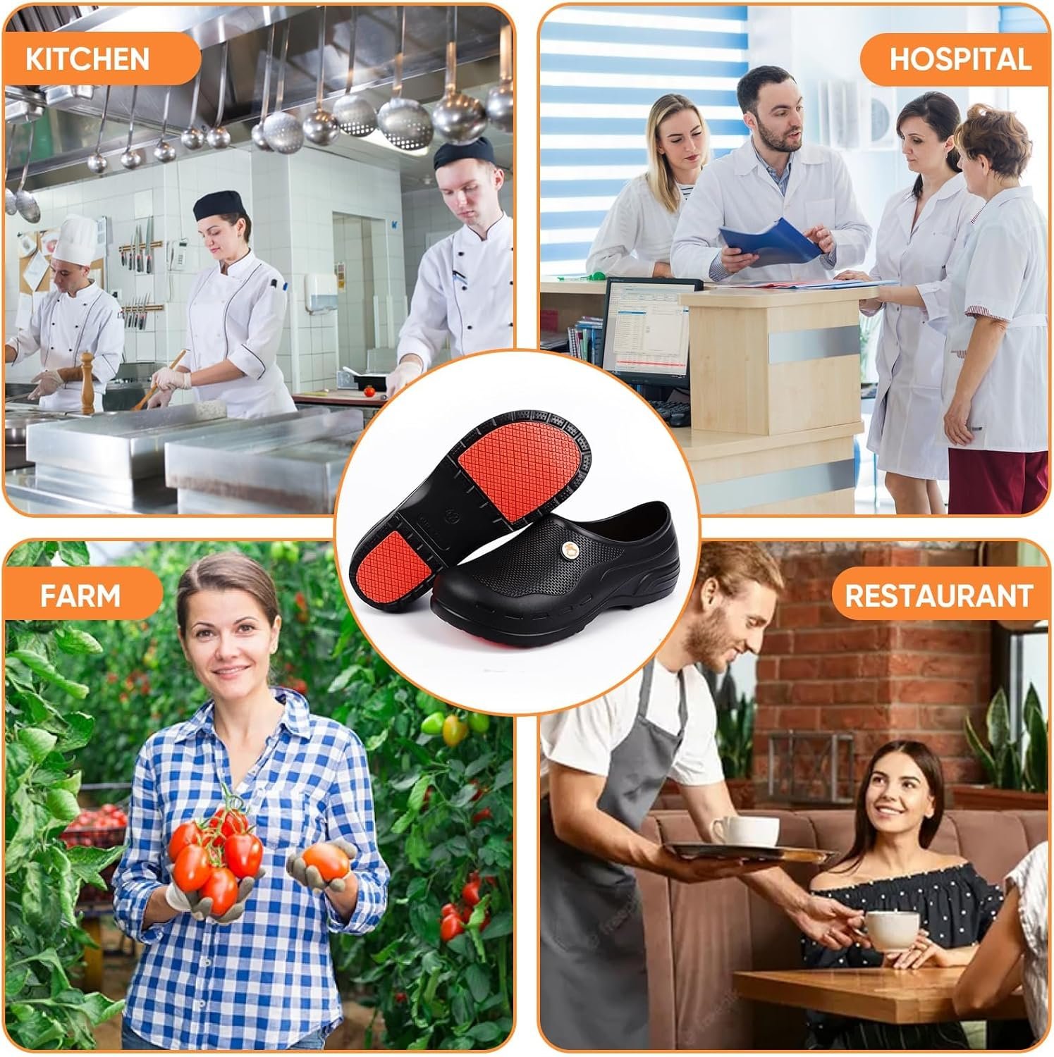 Slip Resistant Work Shoes for Men & Women – Non Slip Clogs for Kitchen/Chef/Garden/Nurse – Durable & Comfortable Black Shoes for Professional Safety(7.5-11.5Men/8.5-12.5Women)
