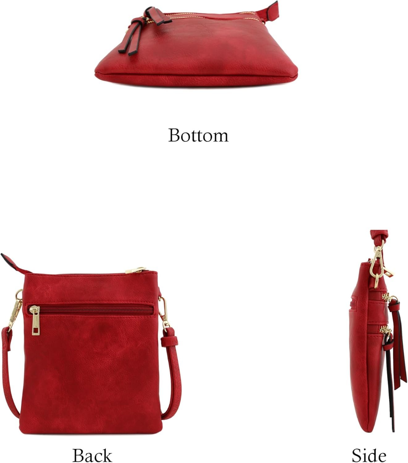 Small Lightweight Shoulder Bag for Women, Mini Multi Zipper Pocket Crossbody Handbag with Adjustable strap