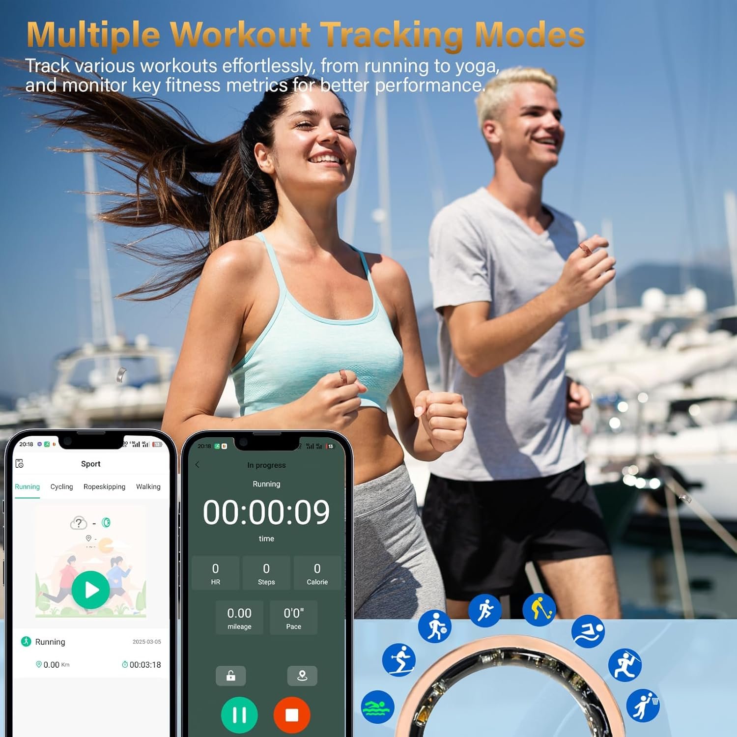 【Waterproof & Durable Design】The Fitness Health Tracker Ring With IP68 waterproof certification, wear it worry-free during handwashing, showers, or shallow swimming. Whether at the gym or on-the-go, this health tracker ring delivers reliable performance.