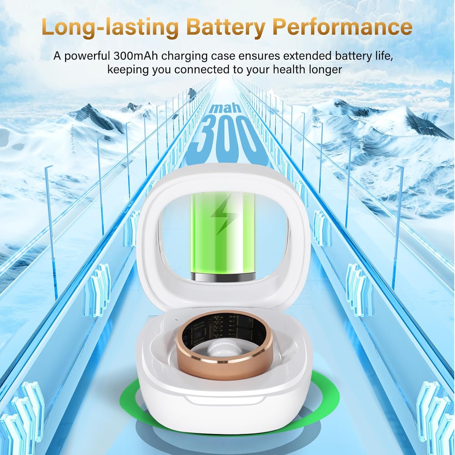 【Long-Lasting Battery, Zero Hassle】Enjoy 3-5 days of use per charge (varies by intensity) and full recharge in under 1 hour. The included 300mAh portable charging case ensures extended power for your vital health ring, ideal for travel or outdoor adventures.
