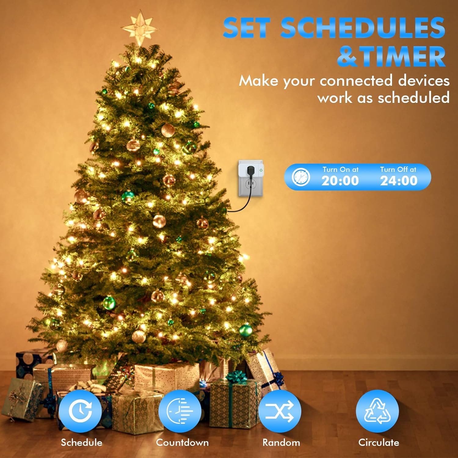 REMOTE & TIMER: Use timer or countdown schedules set your timer outlet to arrange your home devices such as fan, christmas tree lamp, coffee maker etc; smart outlet plugs help your life more reasonable and comfortable