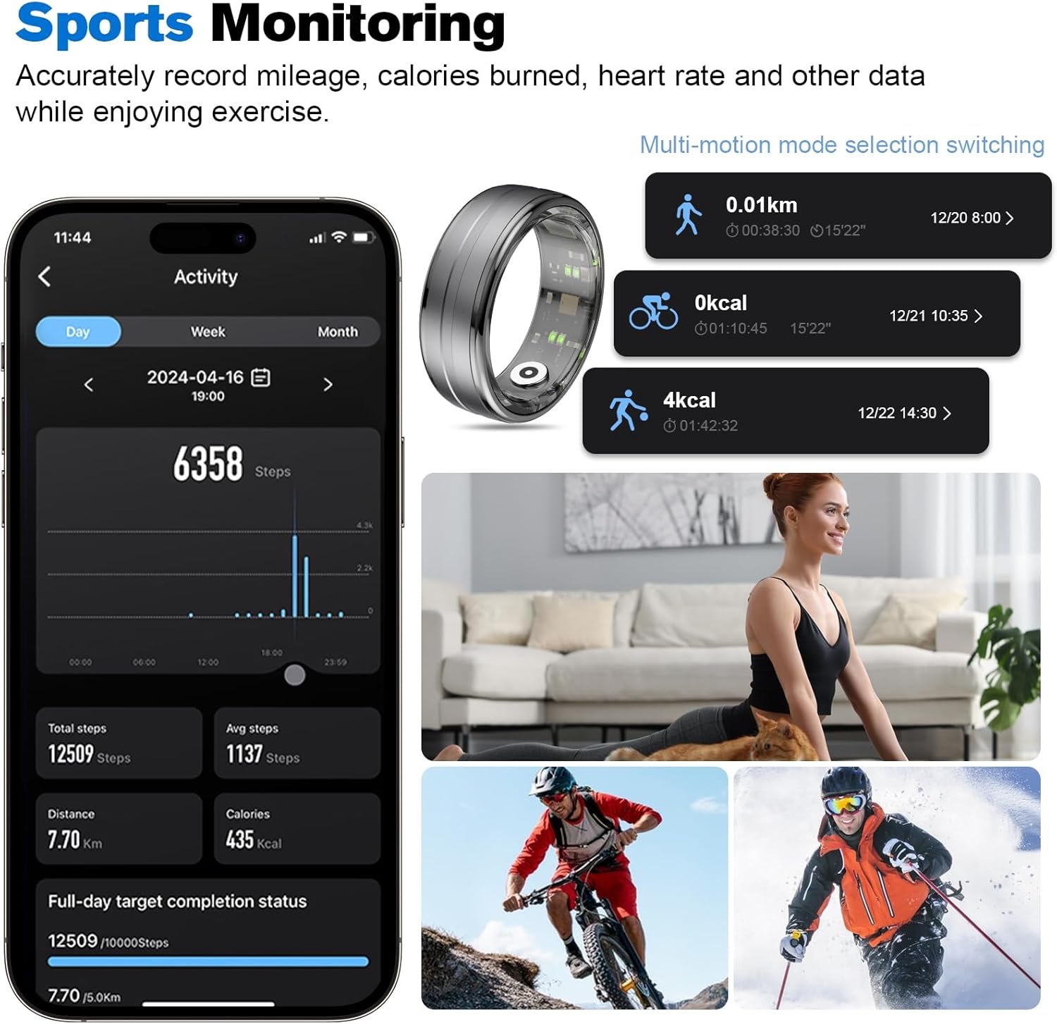 NO SUBSCRIPTION: After Bluetooth connection binds the smart ring, you can use all the functions in the app, and you can detect and check your body’s health data and exercise data at any time without additional subscription fees.