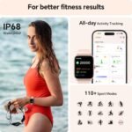 【100+ Sports Modes】Trunsif Fitness tracker with 100+ modes to choose from, such as walking, running, cycling, hiking, whatever you’re on the gym or outside; IP68 waterproof; you can swim and surf with this.