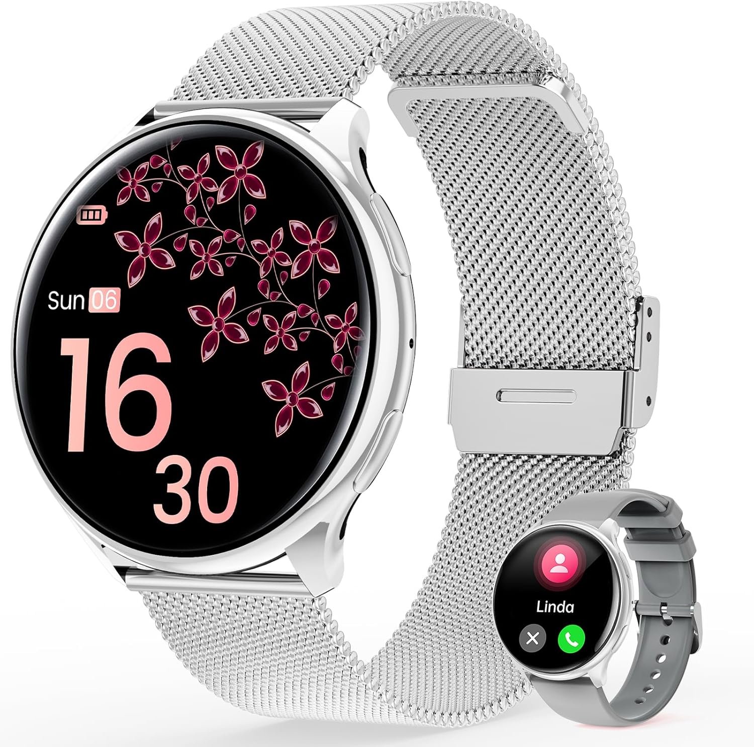 Smart Watch for Women, 1.39″ Fitness Watch with HR/BP/SpO2 Monitor, Female Cycle Tracking, IP67 Waterproof, 113 Sport Modes for Android & iPhone (Silver)