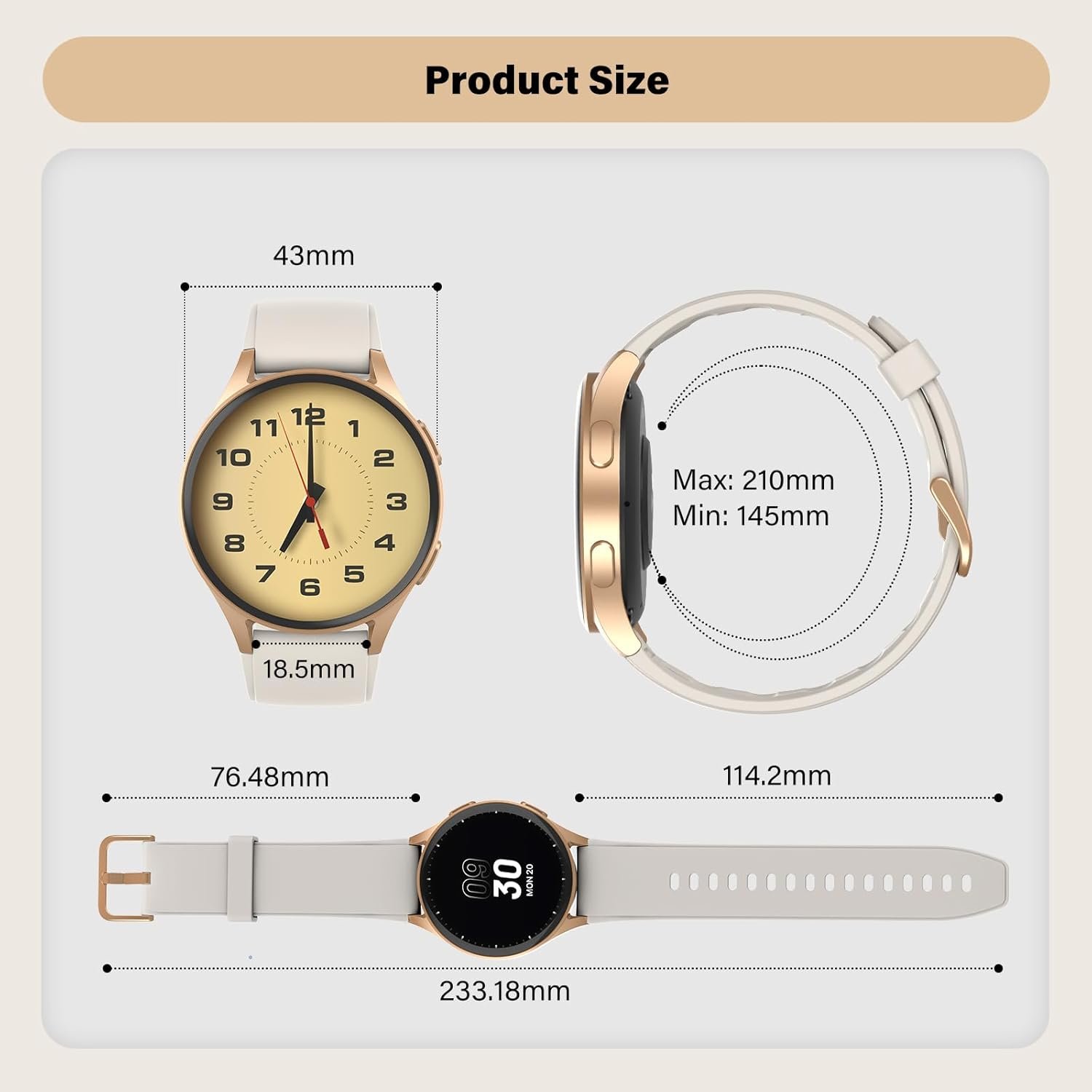 Long Battery Life, 5ATM Waterproof & Versatile Wear Enjoy up to 7+ days of battery life, minimizing the need for frequent charging. The 5ATM waterproof rating allows you to wear it while swimming, running, or in the rain. Whether you need a fitness tracker, a health companion, or an everyday assistant, this smart watch for women adapts to your lifestyle, providing seamless integration with iPhones and Android devices.