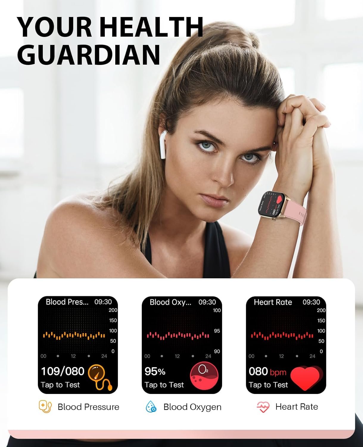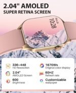Smart Watch for Women, Infrared True Blood Oxygen Monitor, 136+ Sports, 2.04-inch AMOLED Display, Heart Rate Blood Pressure Sleep, IP68 Waterproof Fitness Tracker, Compatible with Android iOS Pink