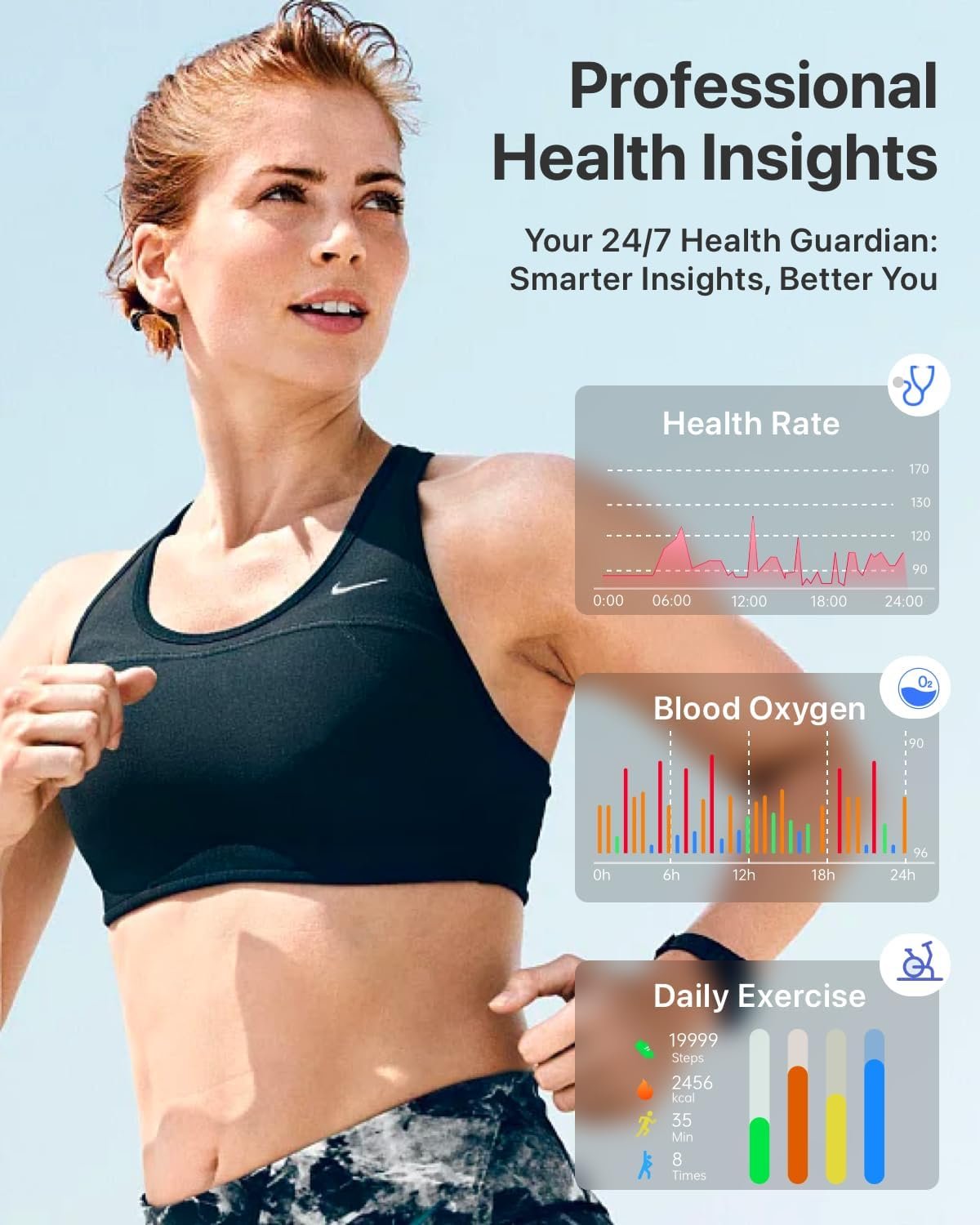 24/7 Health Guardian: Professional Monitoring & Sleep Optimization Track heart rate every 5 minutes, blood oxygen (SpO₂), and sleep patterns 24/7 with accuracy. Features altitude-ready SpO₂ alerts for climbers/athletes and female-friendly menstrual cycle tracking. Develop healthier habits with detailed sleep analysis and personalized insights.