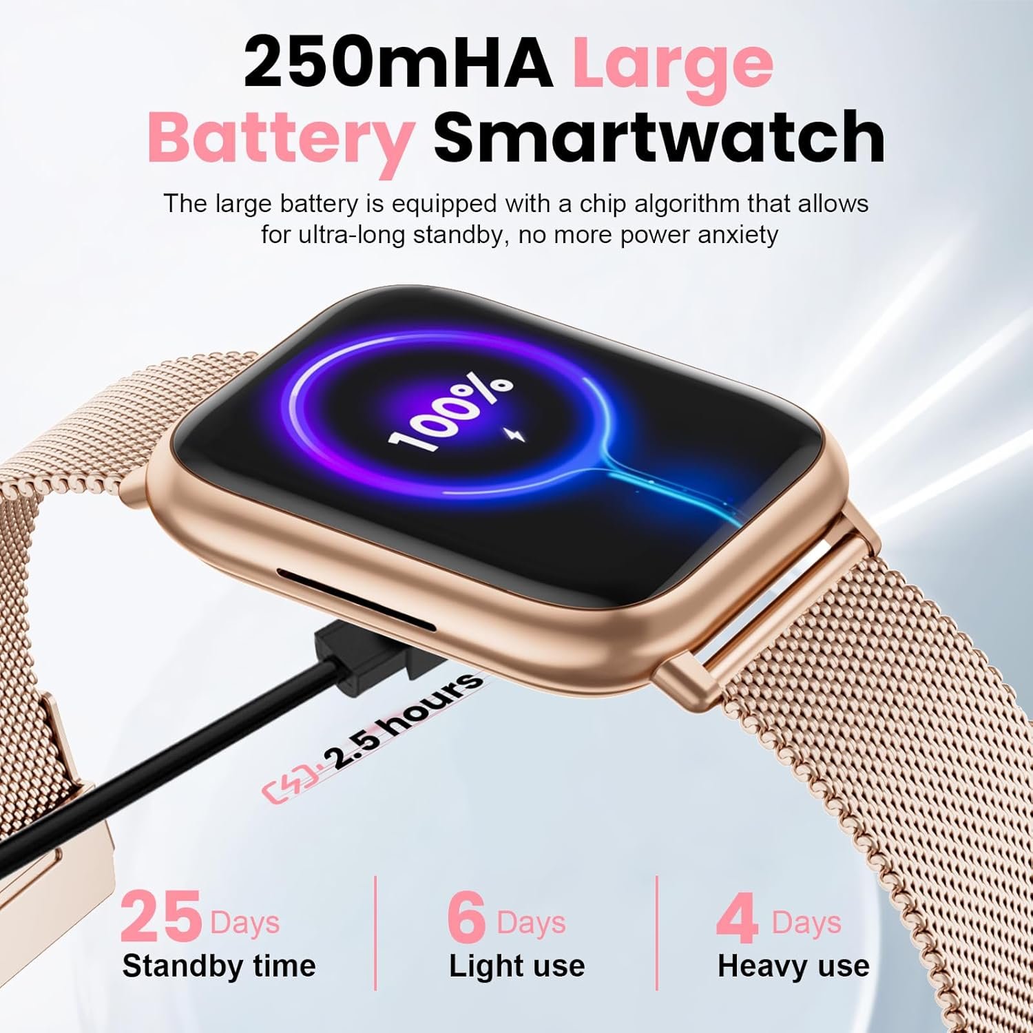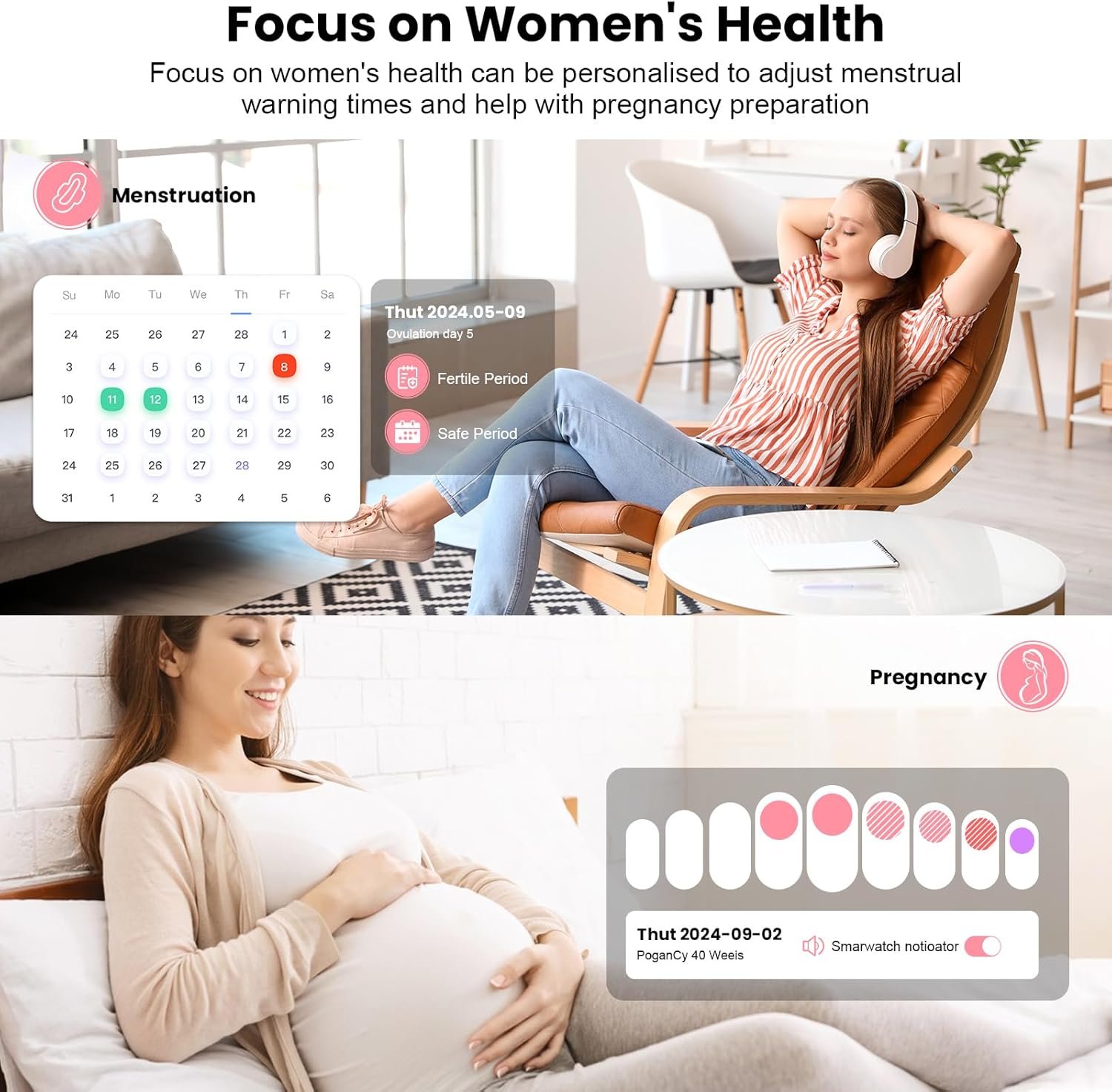 【Health Monitoring & Female Cycle Tracking】 Smart watches for women feature advanced optical sensors to accurately track heart rate, blood oxygen (SpO2), and blood pressure. Monitor sleep stages (deep, light, awake) with detailed sleep quality analysis. Designed as a fitness tracker for women, it includes female cycle tracking to help manage wellness routines