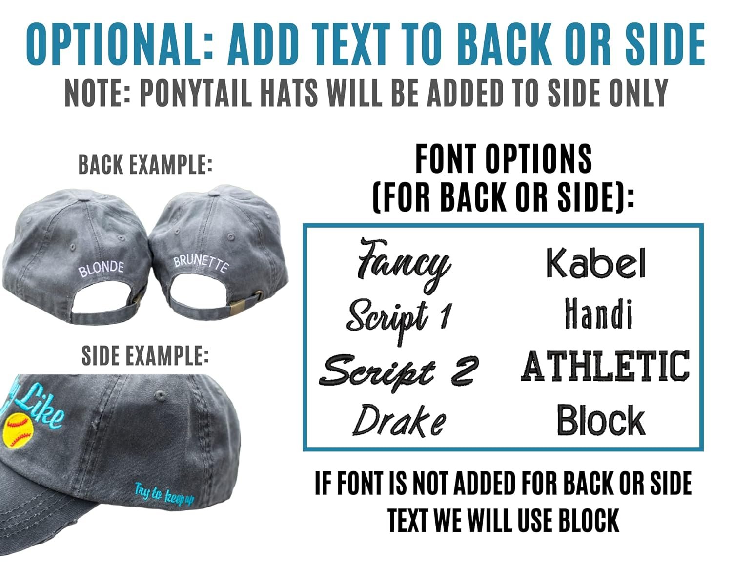 Softball Heart Hat w/Custom Name and/or Number | DISTRESSED Baseball Cap OR Ponytail Hat | Personalized Embroidered Baseball and Softball Mom Hat